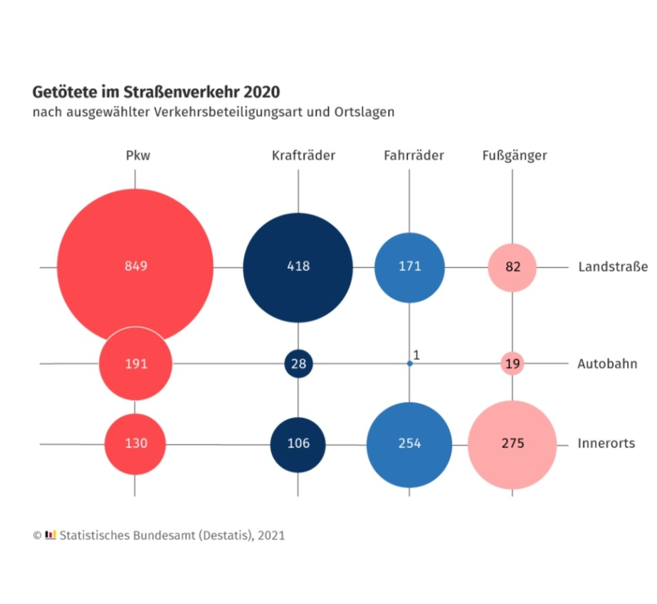 2020 starben die meisten Verkehrsteilnehmer auf unseren Landstraßen. Hier ist am häufigsten die Unfallursache "Fehler beim Überholen", "Nicht angepasste Geschwindigkeit", sowie "Alkohol und Drogen" zu finden. Alles Ursachen, die sich kaum mit schärferen Gesetzen oder Tempolimits verhindern lassen.