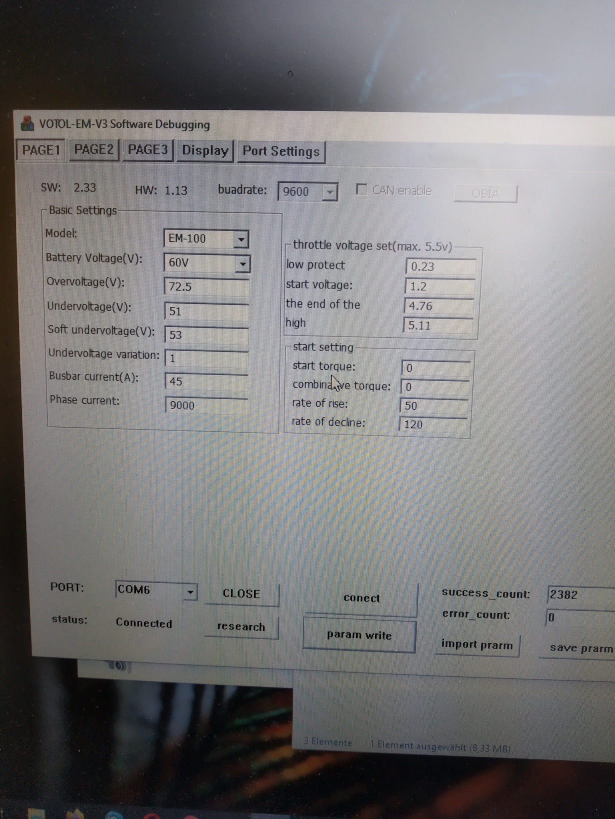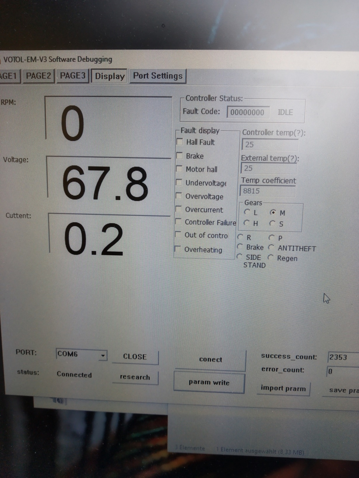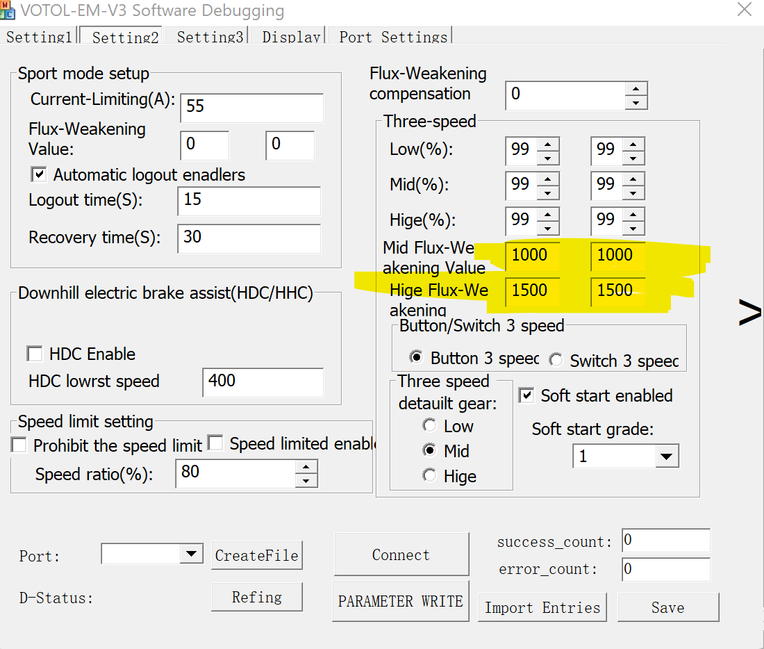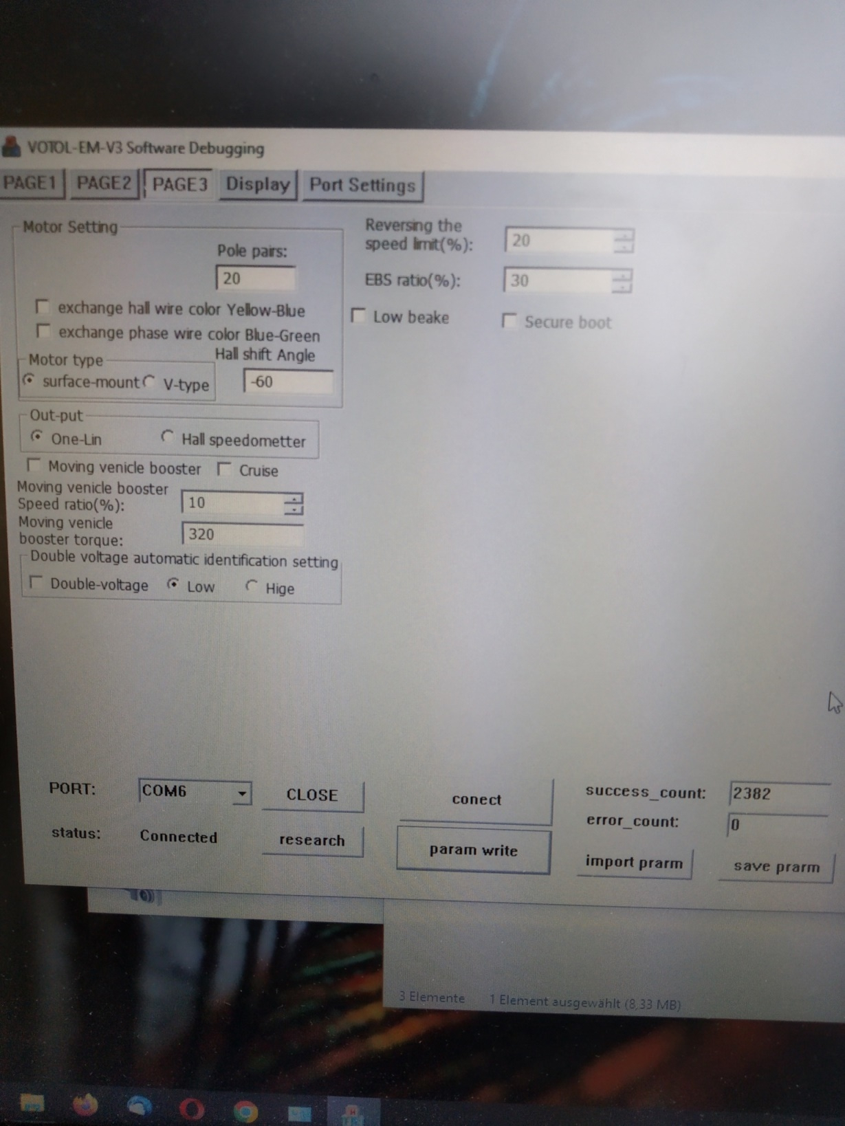 der MQCON/Sabvoton SVMC72150 war bei mir in kurzer Zeit eingerichtet und hatte lediglich die falsche Drehorientierung, die sich auch dort umschalten ließ. Da ist nicht viel einzustellen und er misst sich selber ein. Die Erkenntnisse dort haben aber meinen Ehrgeiz geweckt und mich zum VOTOL zurück gebracht und jetzt bremst dieser endlich auch mit Wenn der VOTOL weiter so laufen würde, könnte man mit der Software auch mehr machen. Dummerweise haben wir wohl genau die Charge erwischt, die nicht dauerhaft läuft und einzelne Programmierwerte nicht annimmt/verliert und man testet sich den Wolf.