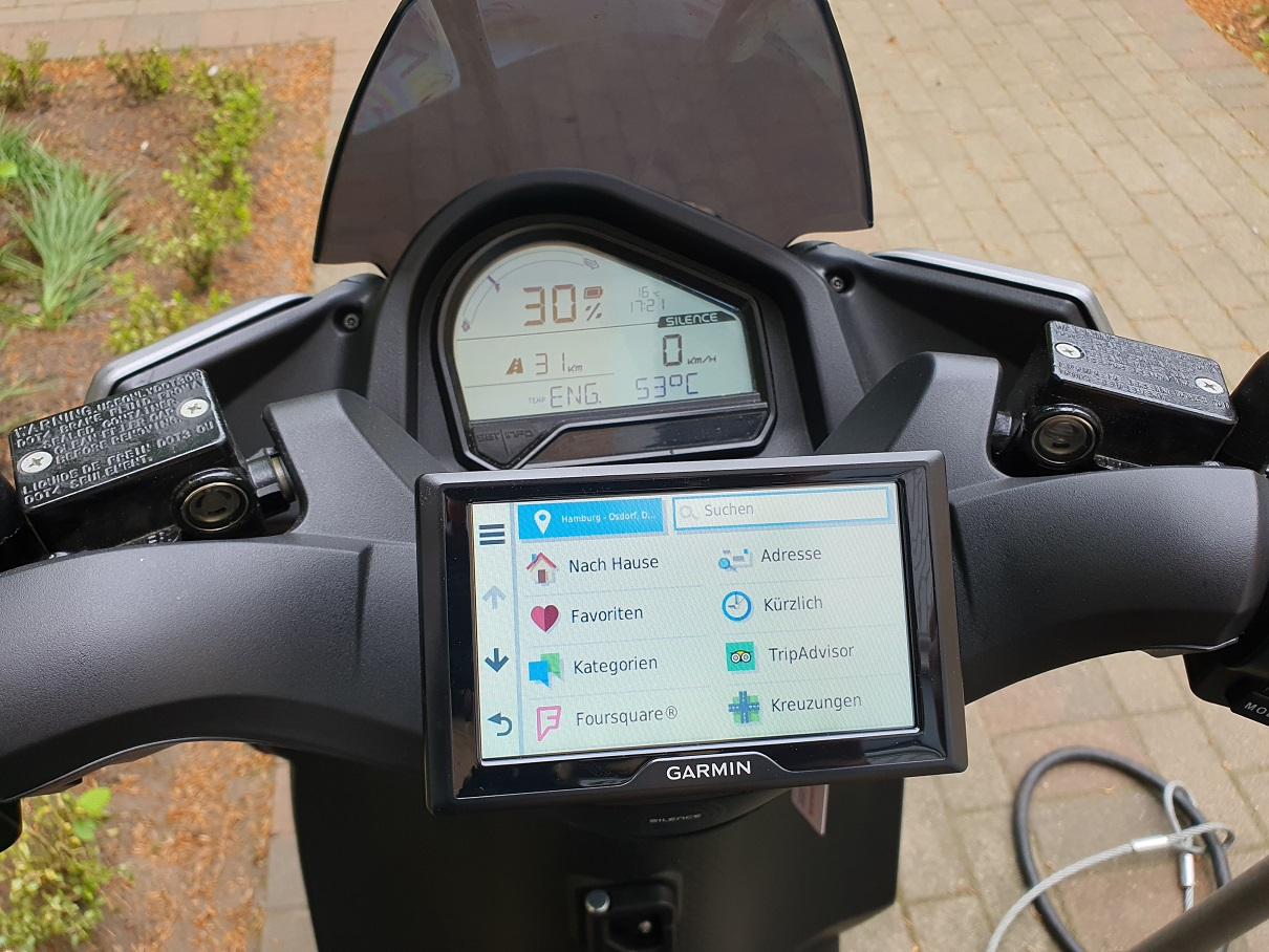 Falls es hier wen interessiert: Die Versorgungsspannung der USB-Dose geht über 12V. Dazu hat der Roller unter der Sitzbank einen Wandler.