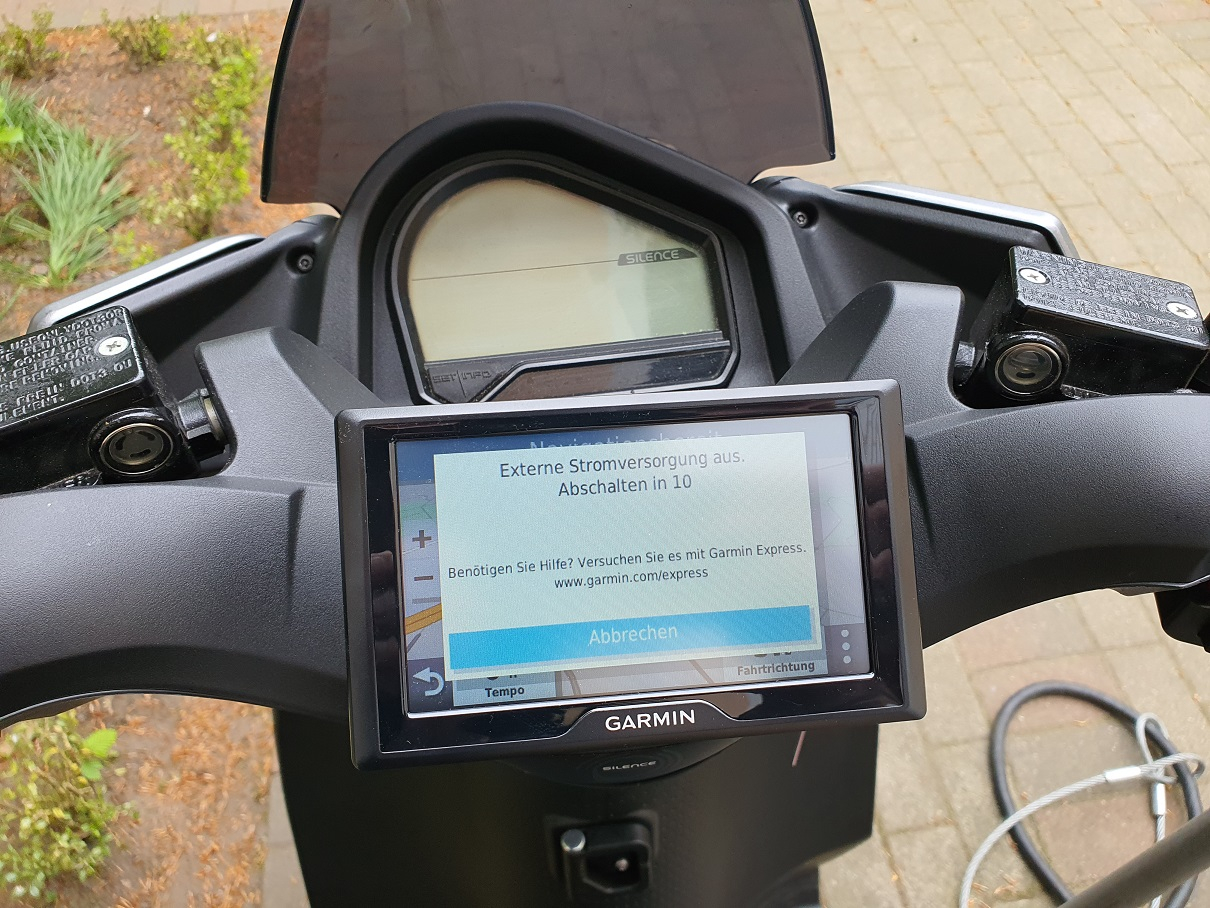 Anmerkung: Der gebastelte Spannungswandler stammte aus dem Zigarettenanzünder des alten Garmin, welches ich gegrillt hatte.