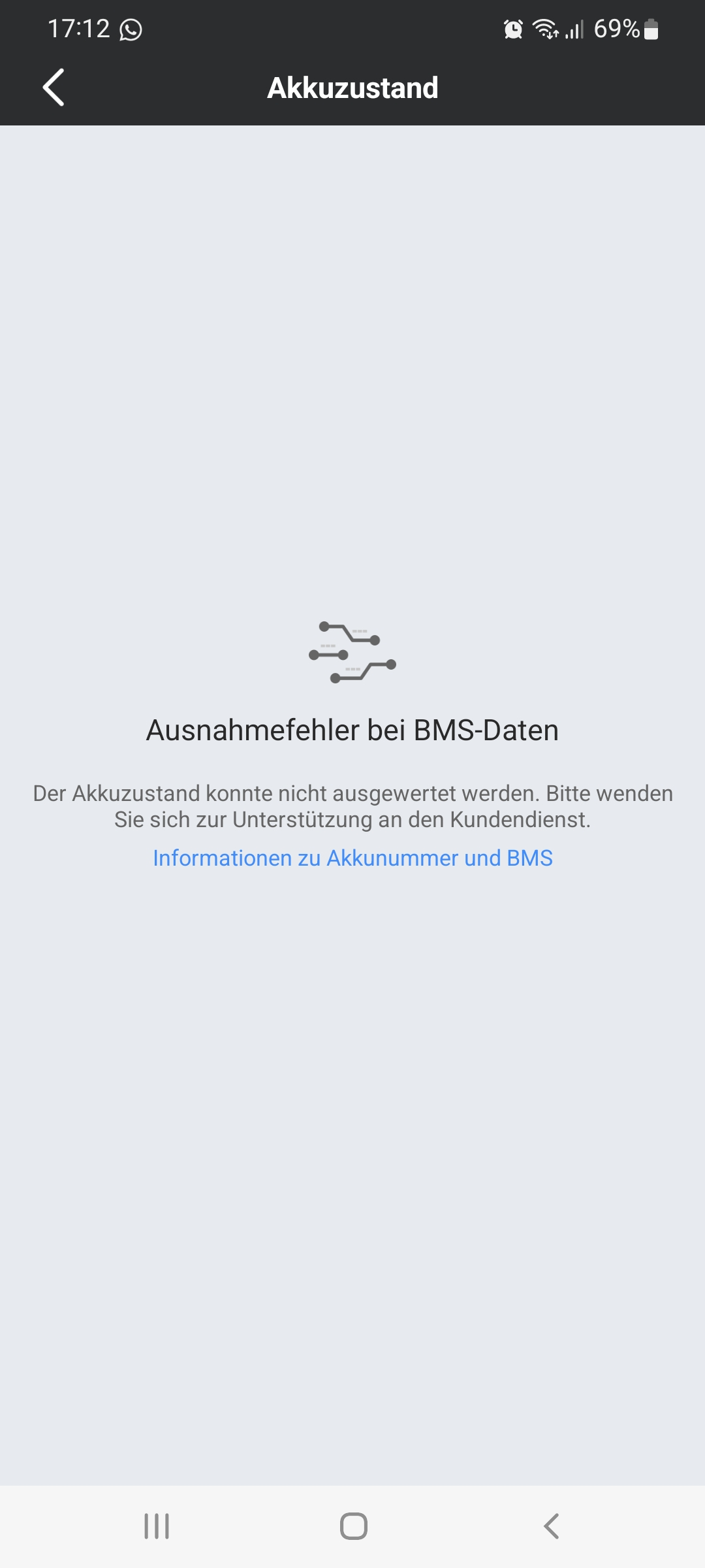 Akku-Punktzahl lässt sich auch nicht auslesen. Klickt man darauf kommt die Meldung: Ausnahmefehler bei BMS-Daten.