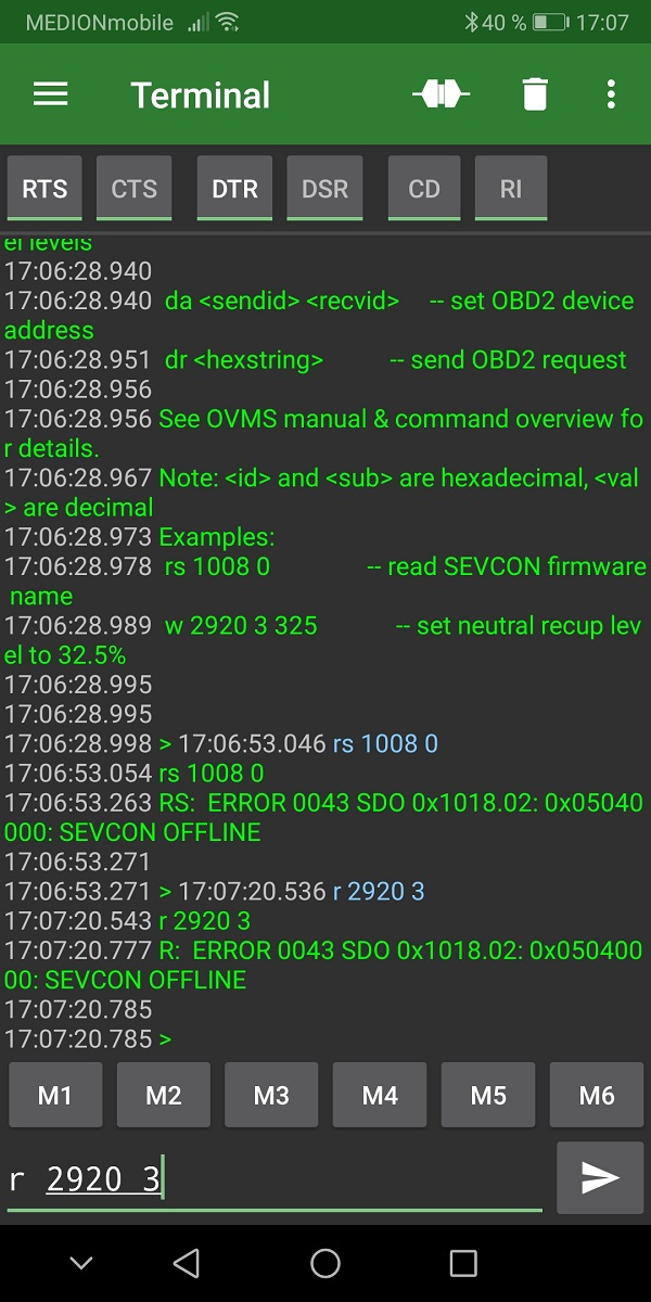 Die Fehlermeldung "SEVCON OFFLINE" ist kein Timeout. Ich bekomme diese Meldung, wenn :