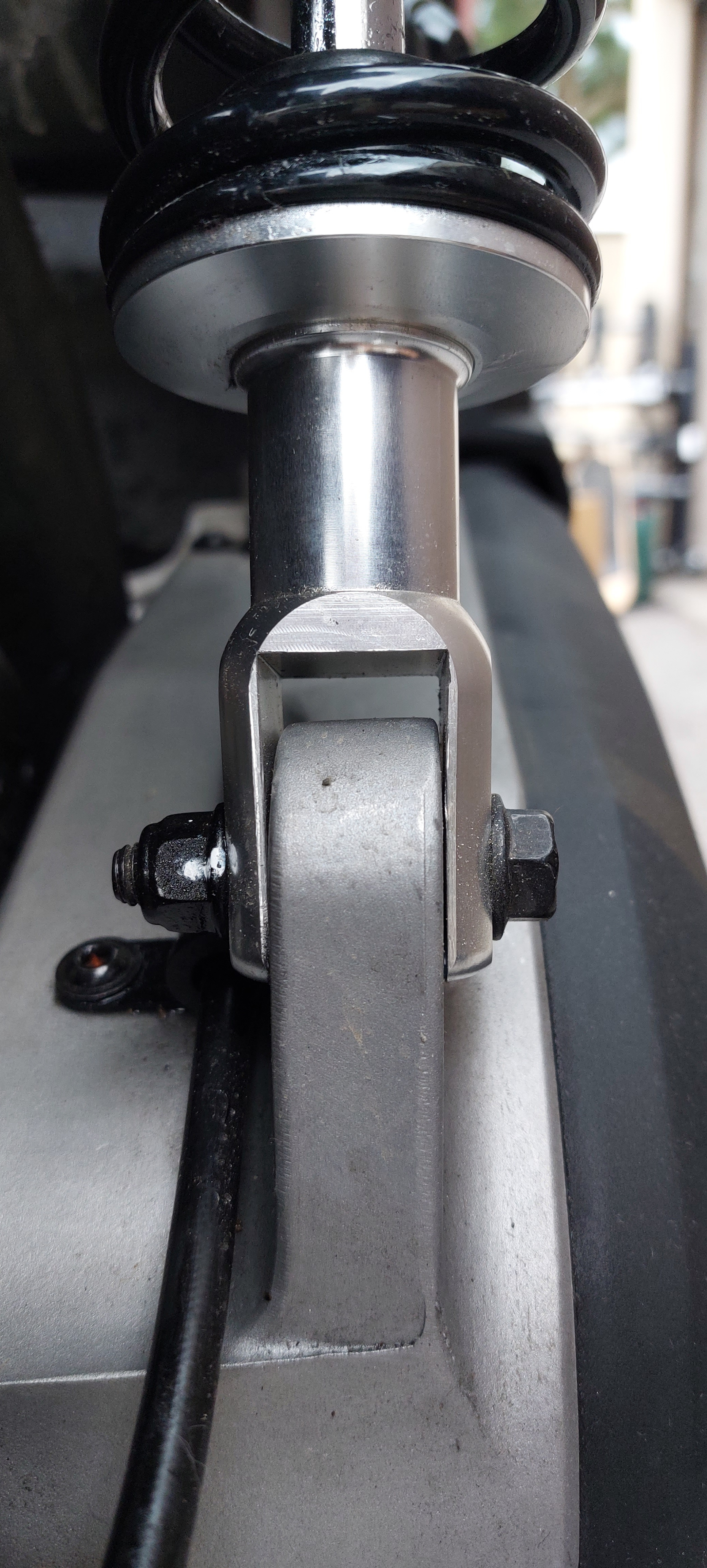 Das Dämpferbein am Mo ist der letzte Chinamüll, zusätzlich ist die Aufnahmegabel des Dämpferbeins unten zu weit für das Auge auf der Aluschwinge. Bei mir wurde es so angeknallt, dass es 2mm zusammengebogen war. Eine festere Alulegierung hätte da einen Riss. Ähnliche Dämpfer z.B. DNM kosten lt.einem Bekannten ca.10-15 EUR im EK bei ein paar Hundert Stück. Und dann sind davon 50-70% Ausschuss. Der hat mir mal 5 Dämpfer geschenkt und ich konnte zumindest die Federn verwenden.