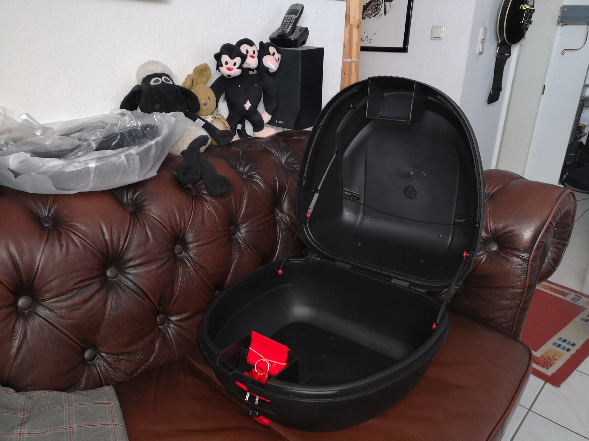 Danke für die bildreiche Info. Ist sehr aufschlußreich für mich. Das Bild von deiner Maschine zeigt doch auch die Koffer, bekommt man da mehr als nur ein Erstehilfekissen rein?