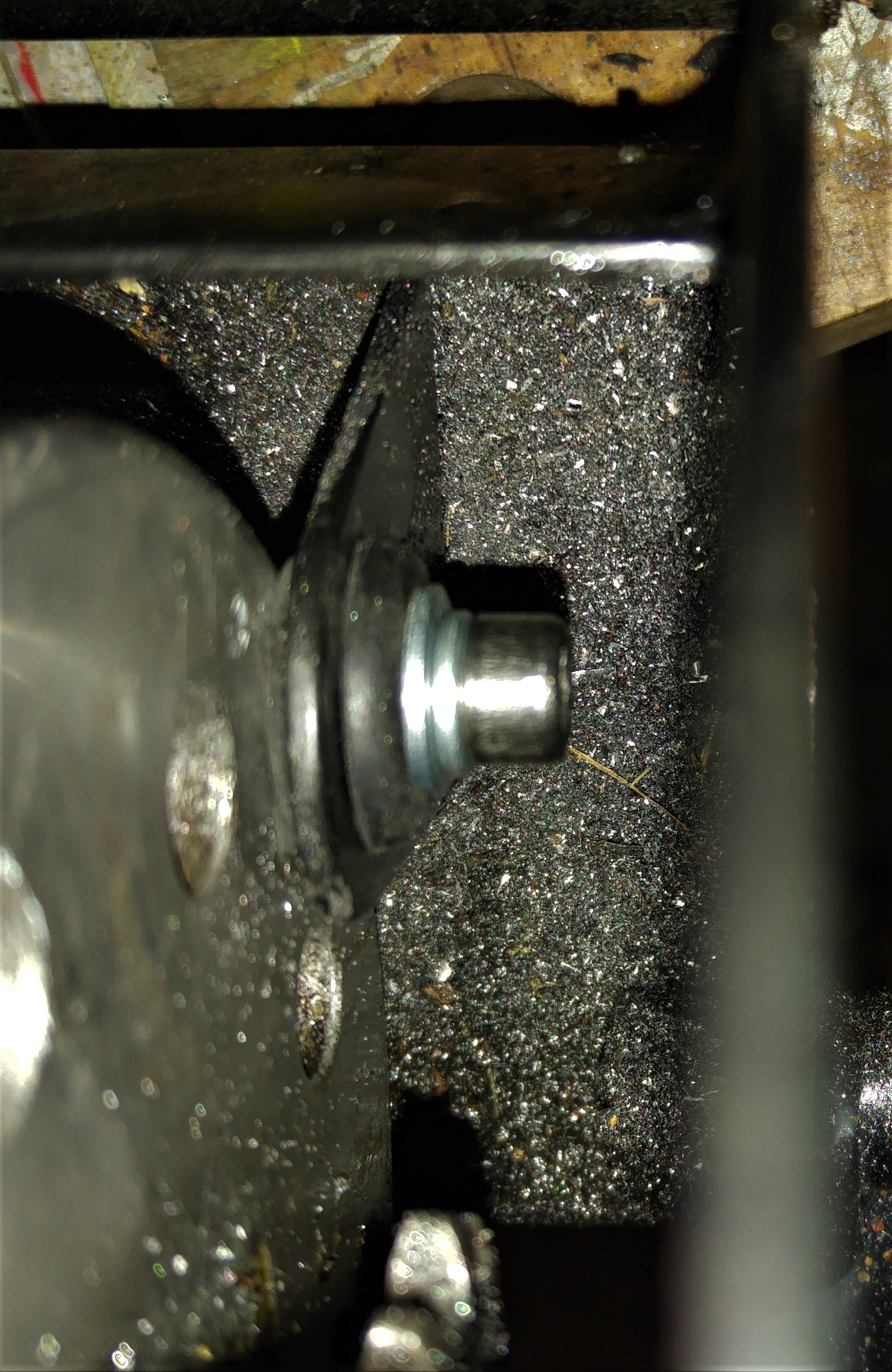 Weiter habe ich aus dem Gummi Scheiben geschnitten die ich bei beiden Halteschrauben zwischen Metallscheiben und Rahmen, sowie Abstandshülse und Rahmen auf die Schrauben gesteckt habe. Für die Schrauben habe ich jeweils Löcher mit einem normalen Papierlocher in den Gummi gestanzt. An den Schrauben habe ich immer Federringe verwendet um den Gummi auszugleichen.