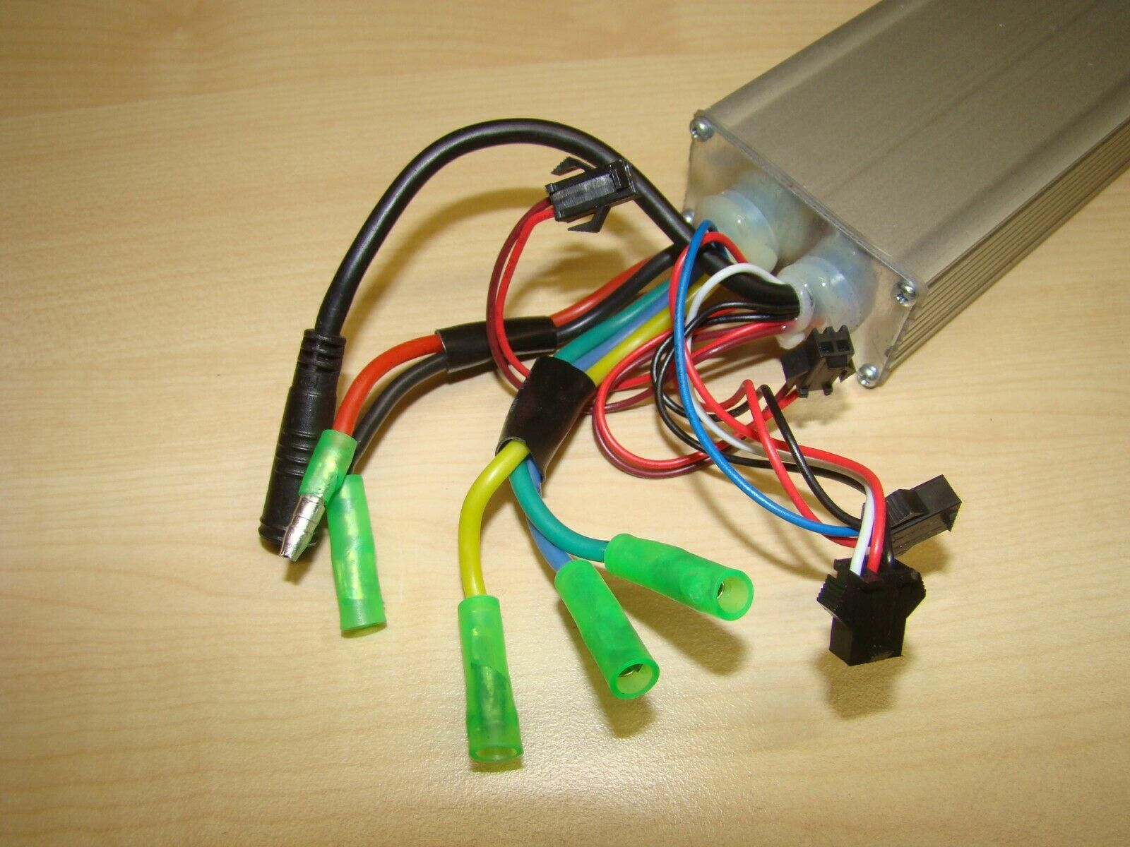 So richtig erkennen, ob es ein Brushed-Controller (zwei Kabel zum Motor gelb und Blau) oder ein Brushless-Controller ( drei Kabel zum Motor gelb grün blau) kann ich nicht. Ich gehe jetzt von Brushed Controller 36 Volt aus. Und davon brauchst Du eine Ausführung die zusätzlich zum gerregelten Motorstrom 12 Volt oder 6 Volt für Licht erzeugt.