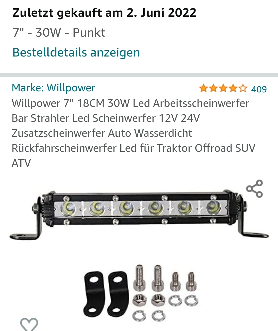 Ah ja, ich glaub' sowas hab' ich bei IKEA schon mal gesehenJan1440 hat geschrieben: So 5. Jun 2022, 18:21 Die Led-Leiste ist eine Arbeitsleuchte mit separatem Schalter und darf nicht im öffentlichen Straßenverkehr benutzt werden....