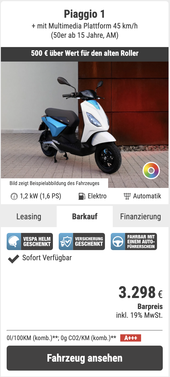 Ich habe meinen Roller beim Autohaus König gekauft. Das Angebot ist derzeit nicht mehr verfügbar, aber zumindest die Angebotsvorschau mit Hinweis auf die Multimediaplattform ist noch sichtbar: