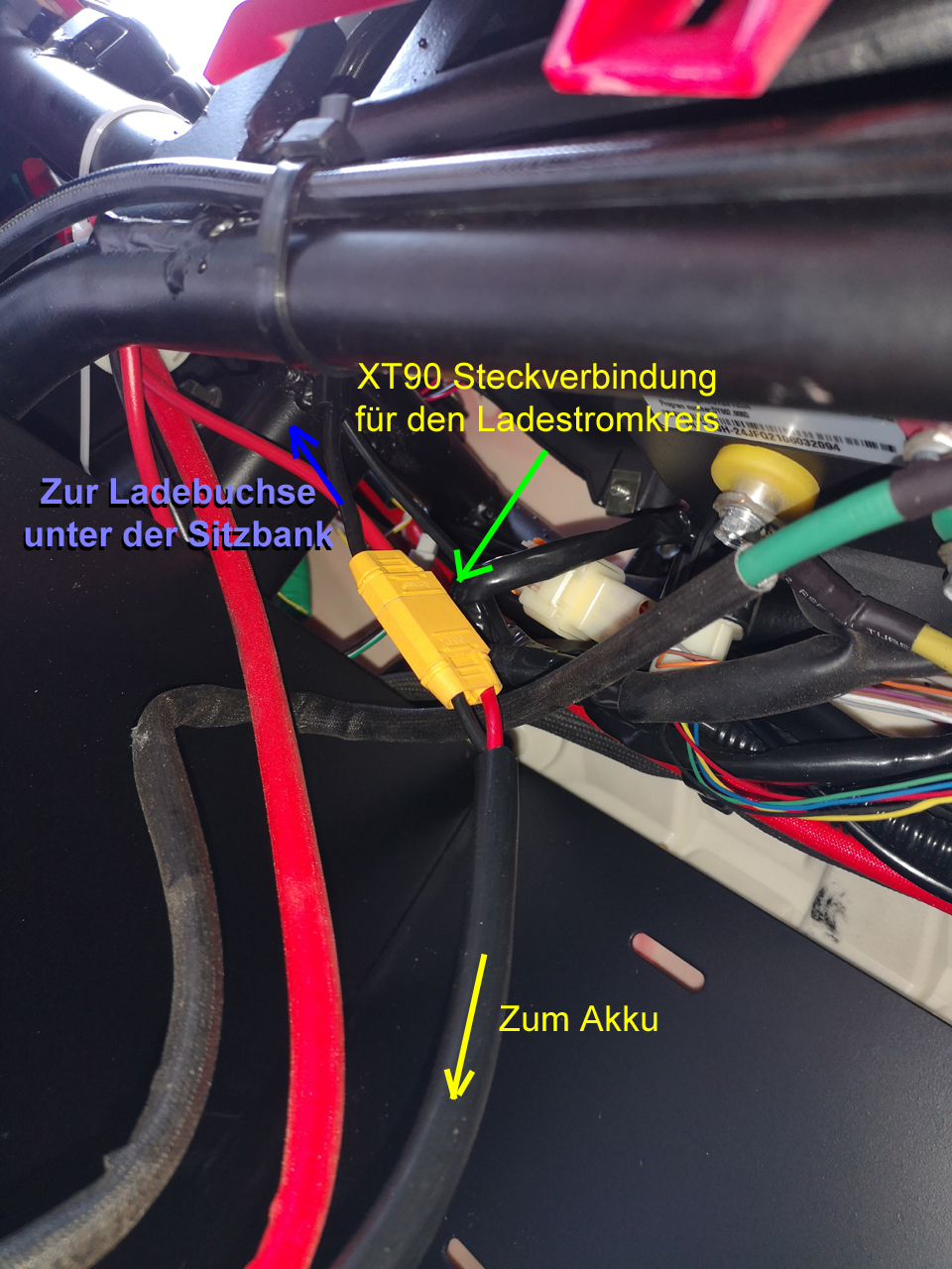 This wire must be one line of the charging circuit (which is disjunctive from the main power circuit, due to the fact that our battery uses an extra connector for charging).