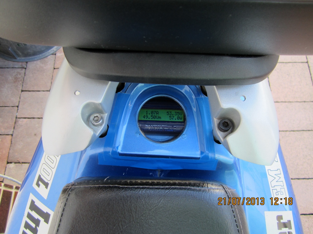 Da die LIFEPO's recht Spannungsstabil sind, kann über die Spannungsanzeige im Lenker nur sehr bedingt eine Aussage über den tatsächlichen Ladezustand gemacht werden.