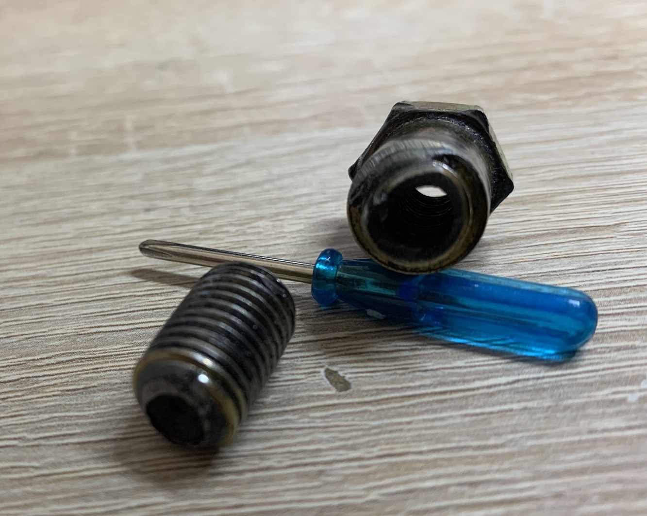Ein passenden Bolzen, der leider eine Sollbruchstelle (am Gewinde - Übergang hohl zu massiv) besitzt, kann ich leider nirgends finden.