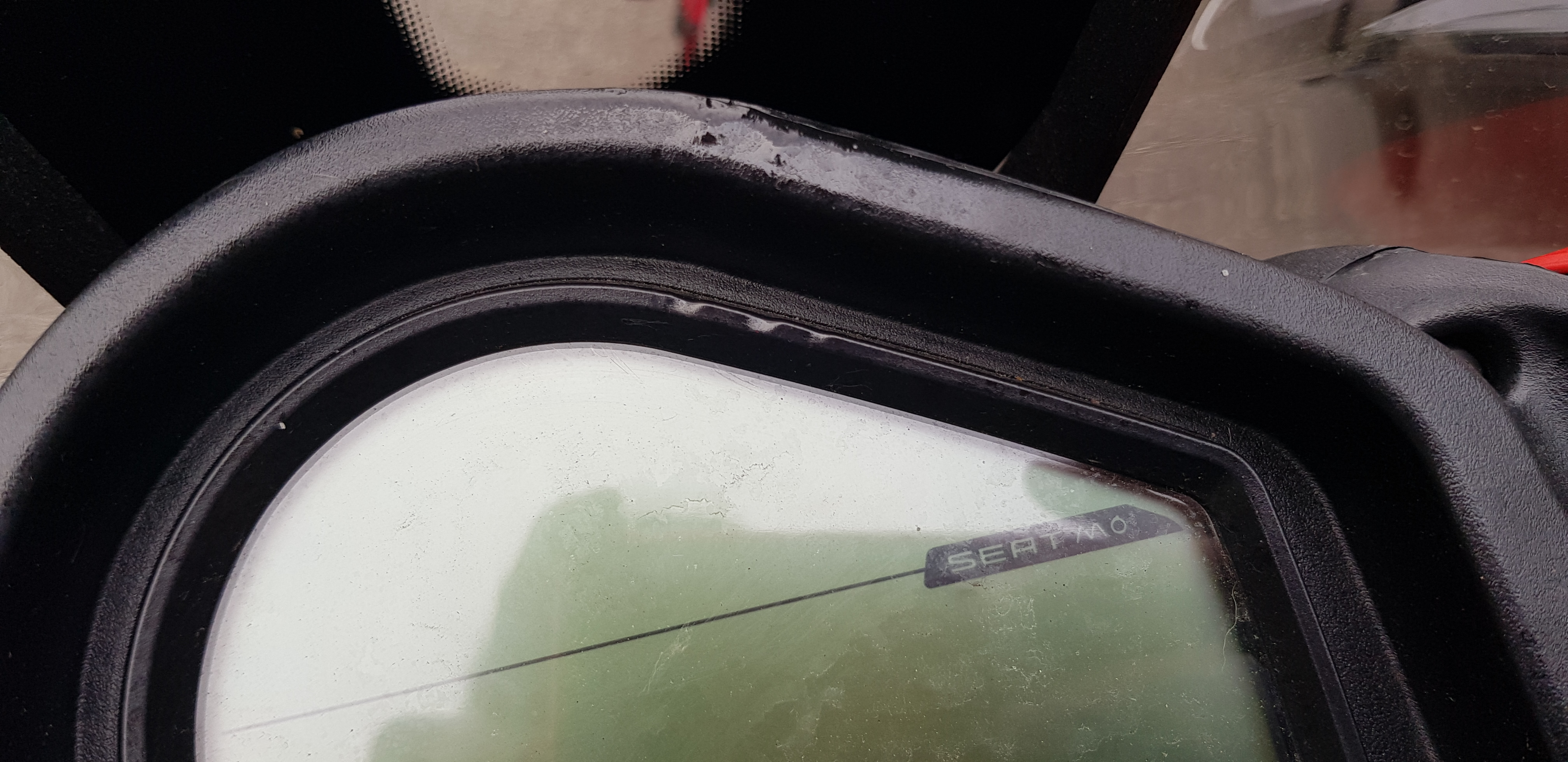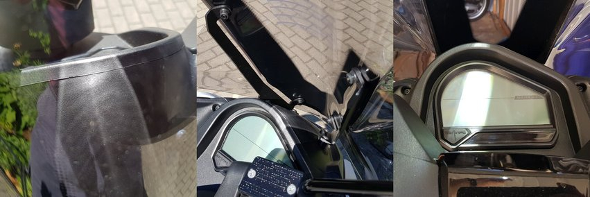 Mit einer Taschenlampe habe ich den Sonneneinfall in der Garage simuliert und einen Brennfleck auf der Tachoumrahmung erzeugen können. Da sollten alle Windschildaufrüster künftig ein Auge drauf haben!