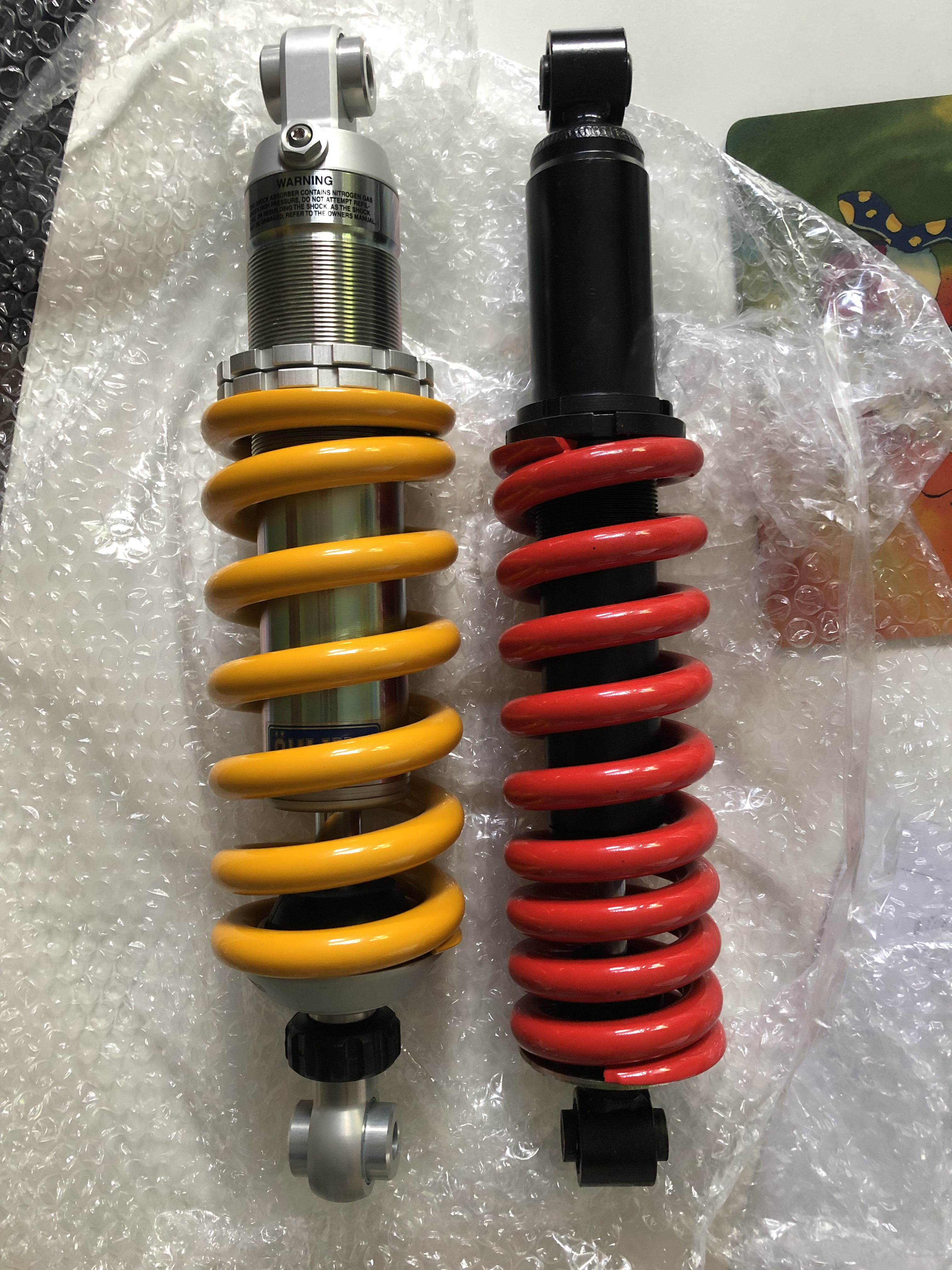 Das sind die beiden Dämpfer. Alrendo original und der Öhlins.