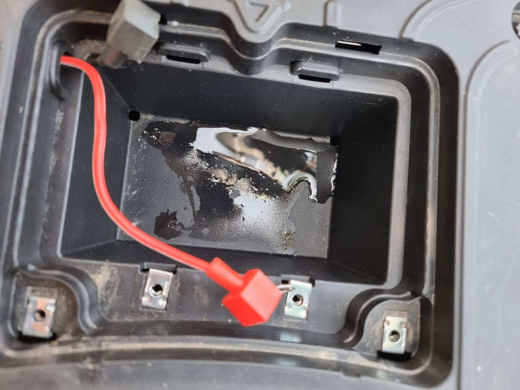 Was mich beim Ausbau irritiert hat, das unter der Batterie Wasser stand.