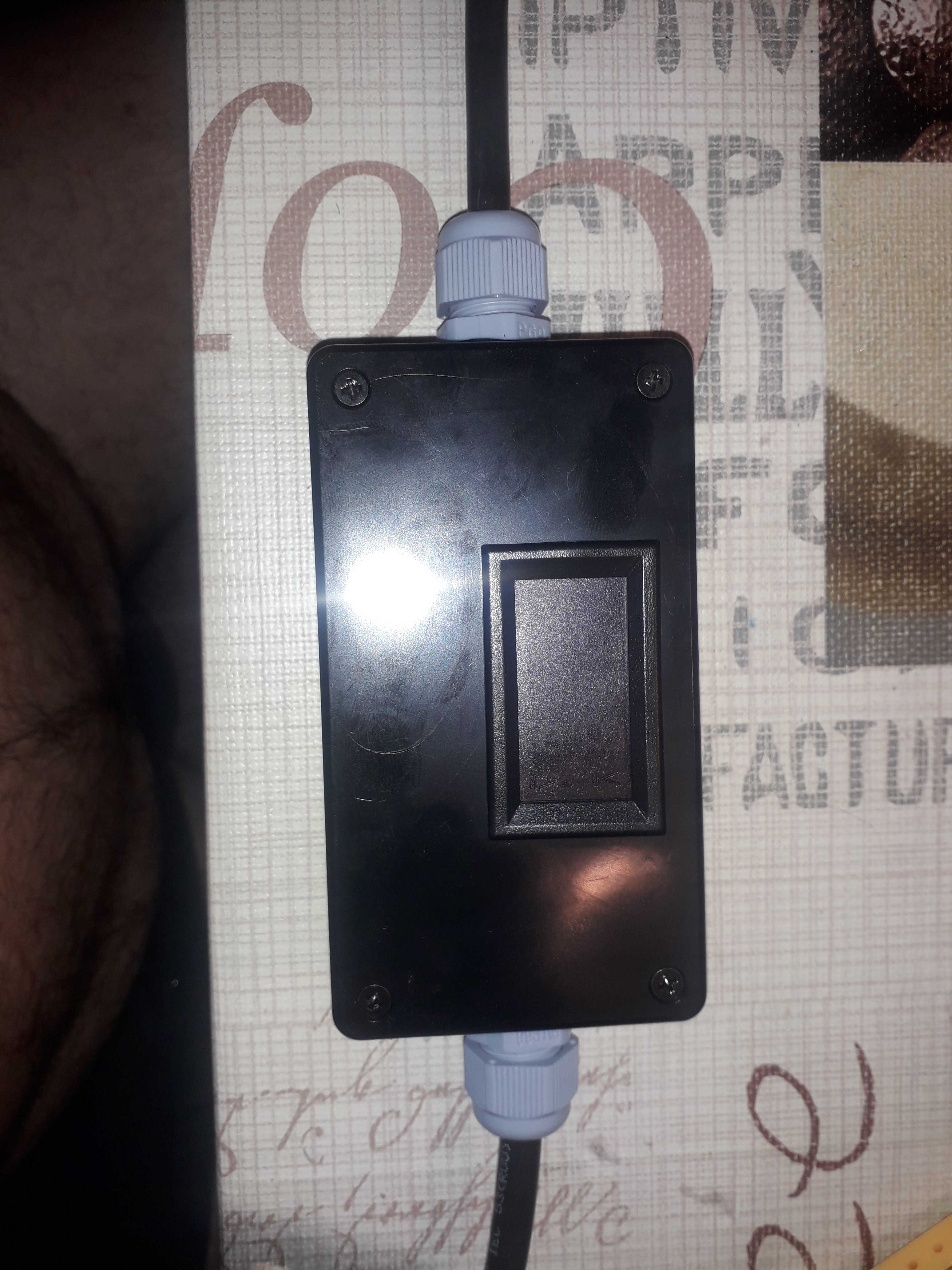Ich habe das Ladekabel eines meiner Ladegeräte aufgetrennt und das selbst gebastelte Kästchen dazwischen gesetzt.