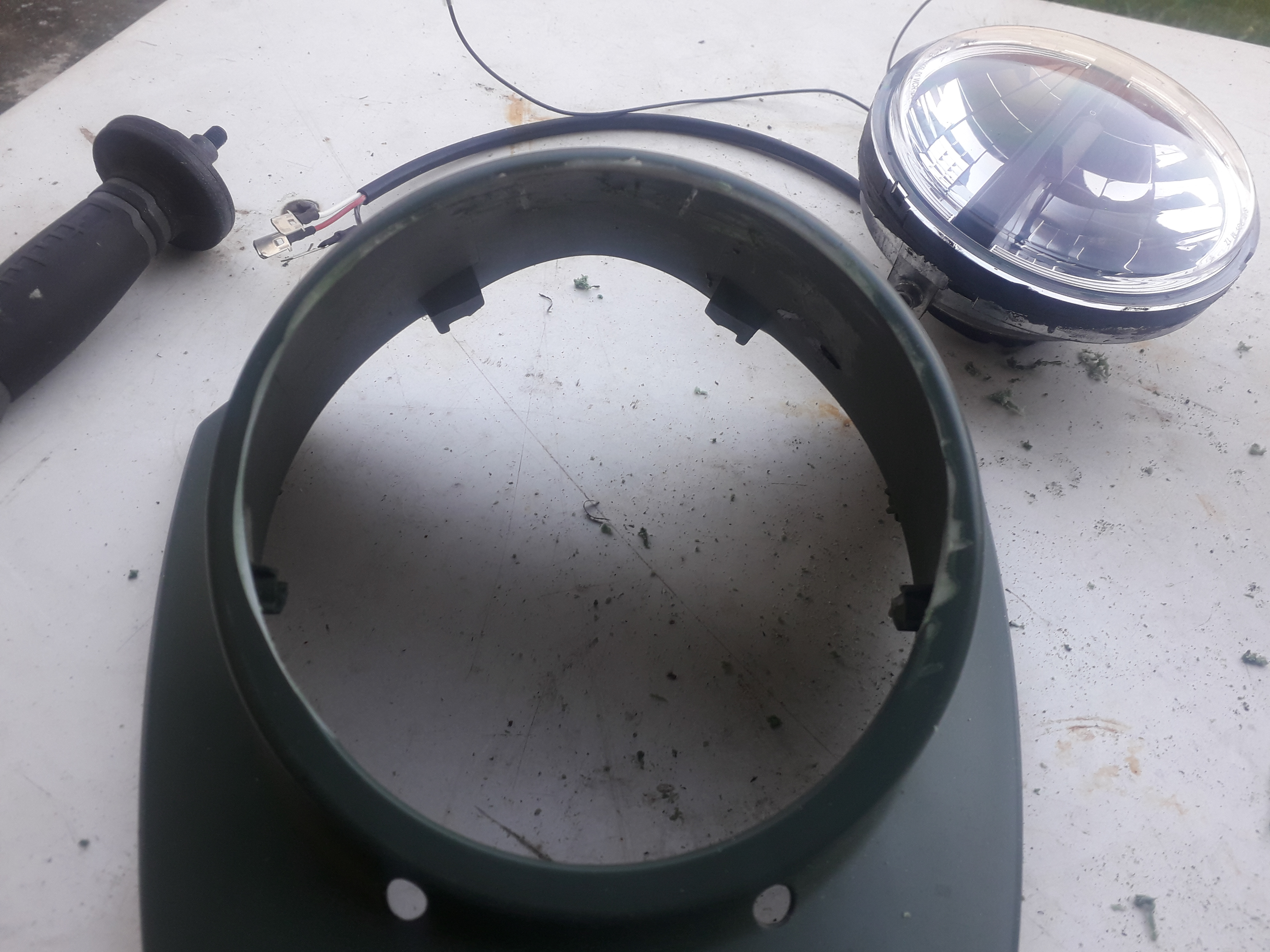 Der Rand rund um die Scheinwerferöffnung muß bis auf wenige mm weg.