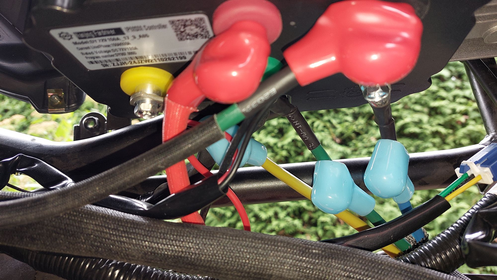 Der Motor hängt mit 3 Kabeln (blau grün gelb) am Controller, und ein Steckverbinder ist noch zu lösen.