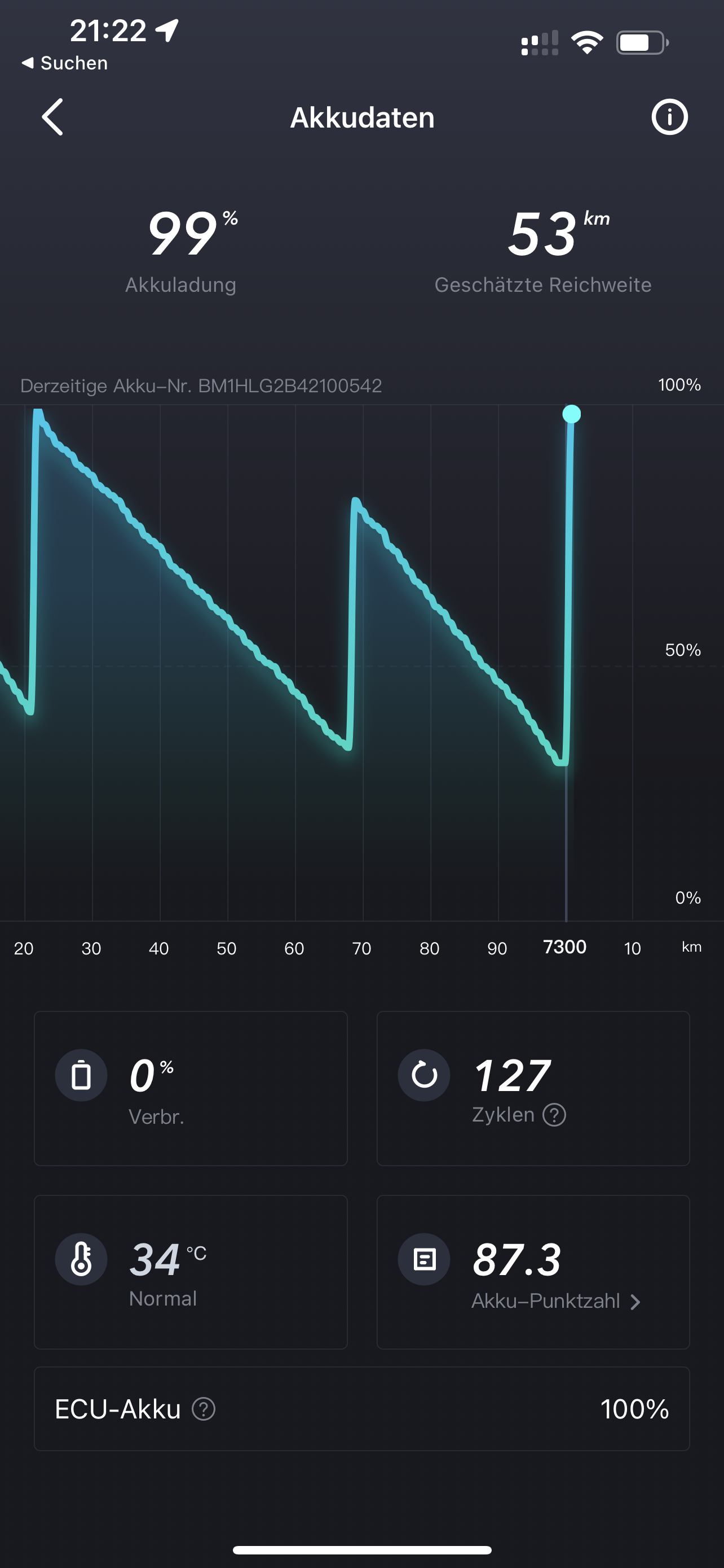 - 22.306km | NIU N Pro _______ | EZ 04/2019 | 1. Akku | 033 Zyklen I @ Bergziege (neues BMS nach 213 Zyklen)