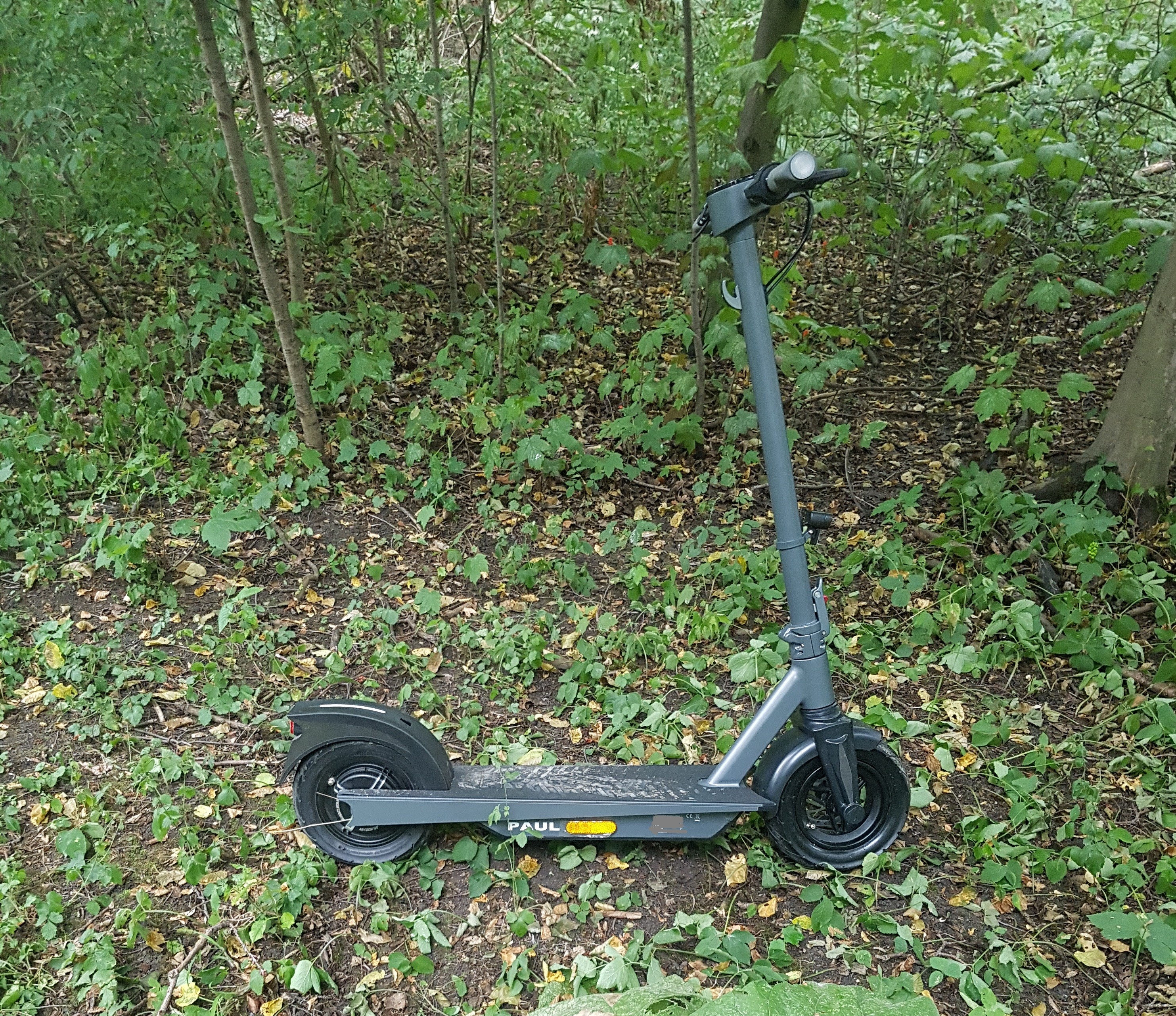 gestern hab ich mir den Paul von Trittbrett gekauft. Probe gefahren hab ich den vor ner Woche schon. Hat mir auch zu gesagt. Dann wollte ich mir den holen und alle waren weg. Verdammt. Vorgestern Abend kamen dann drei Paletten mit Pauls an. Am Morgen waren online schon 2 Paletten weg gewesen. Als ich dann gegen 10h einen kaufen wollte waren nur noch drei davon da. Gesagt getan einen gekauft und in den Hundeanhänger verfrachtet. Weil ich ja noch kein Nummernschild für den hatte musste ich die 11 Kilometer den Paul im Hundeanhänger nach Hause fahren. Zu Haus erst mal alles auf festen Sitz der Schrauben geachtet und die Reifen auf 3,5 Bar aufgepumpt. Dann ab auf die Straße zum Wald. Für mich ist der Paul dafür da wo ich in den Wäldern herumfahre. Ansonsten würde ich ja das Fahrrad nehmen aber die DB Bahnen sind so voll morgens und abends das ich mit dem Paul da besser weg komme.