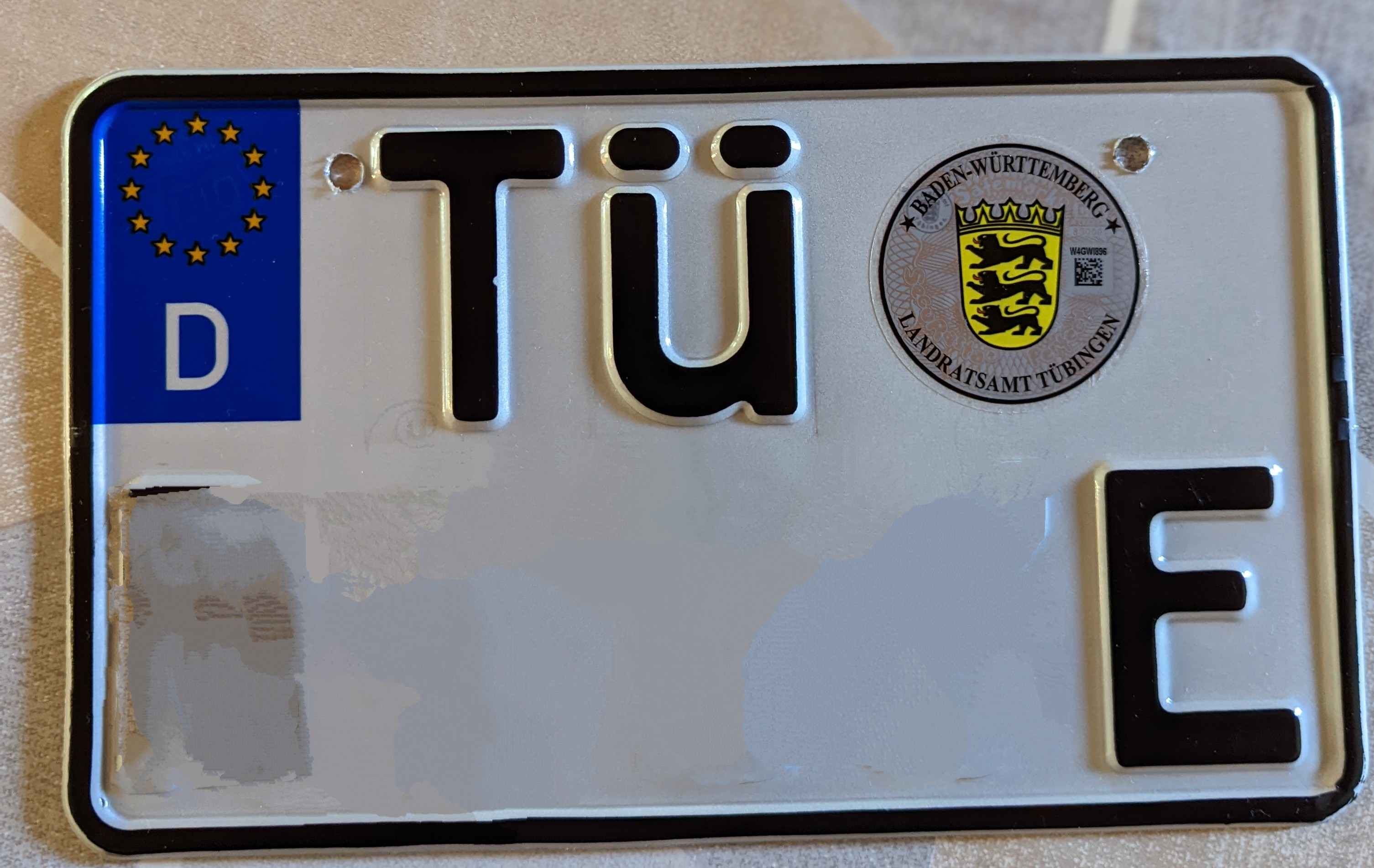 Normalerweise ist ein Kennzeichen für Leichtkrafträder Pflicht (BxH=255x130mm), je nach Zulassungsbehörde werden auch normale Motorradkennzeichen akzeptiert (hat ein Freund von mir mit seiner Fantic Caballero Flat Track 125 erfolgreich hinbekommen). Ich habe zwei Buchstaben, drei Ziffern und das E mit drauf - passt problemlos. Sieht am Beispiel: LB-XX 888E so aus: