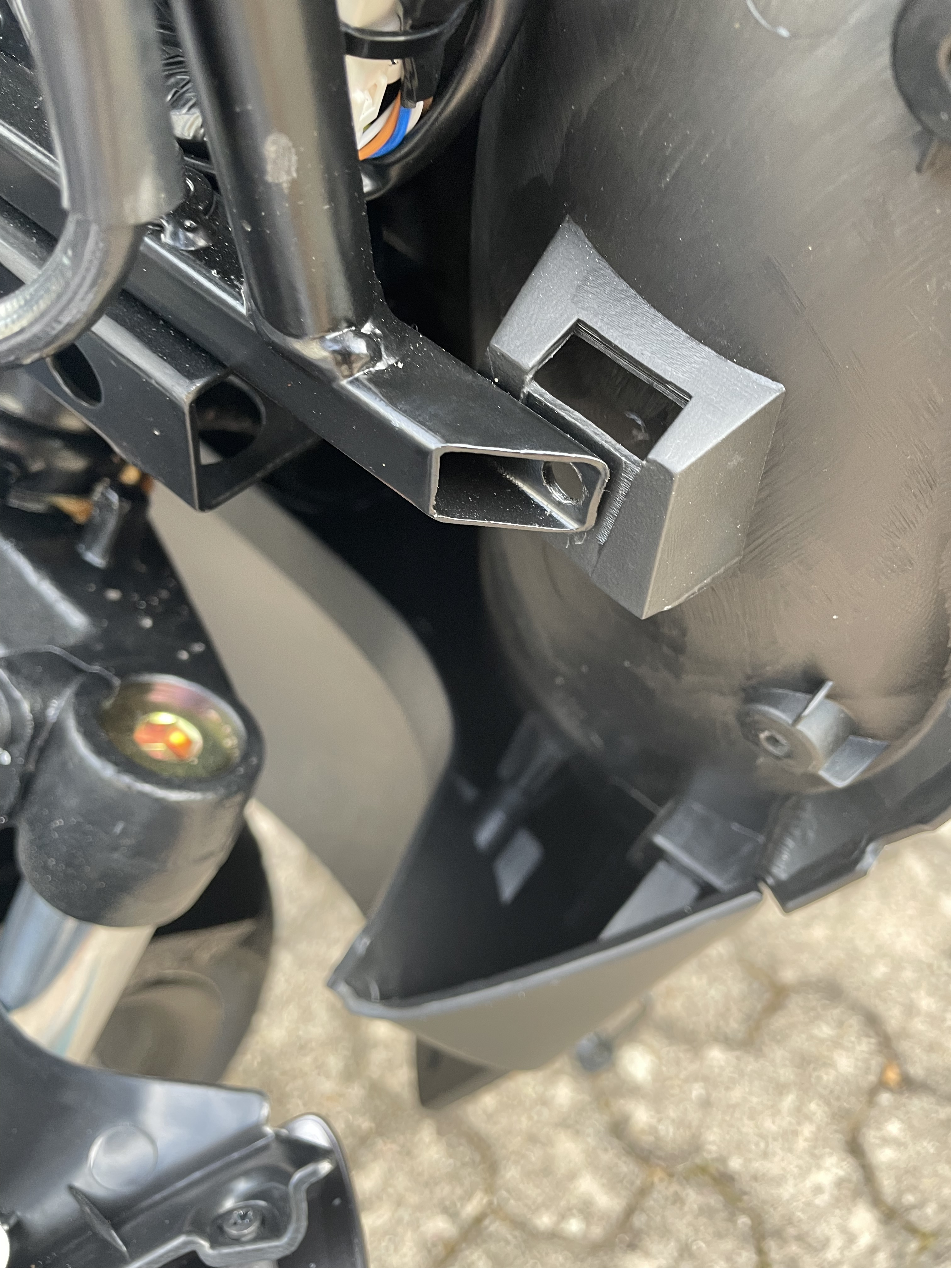 Mit einer normalen M6 Inbus plus ein paar U-Scheiben & Mutter gefixt.