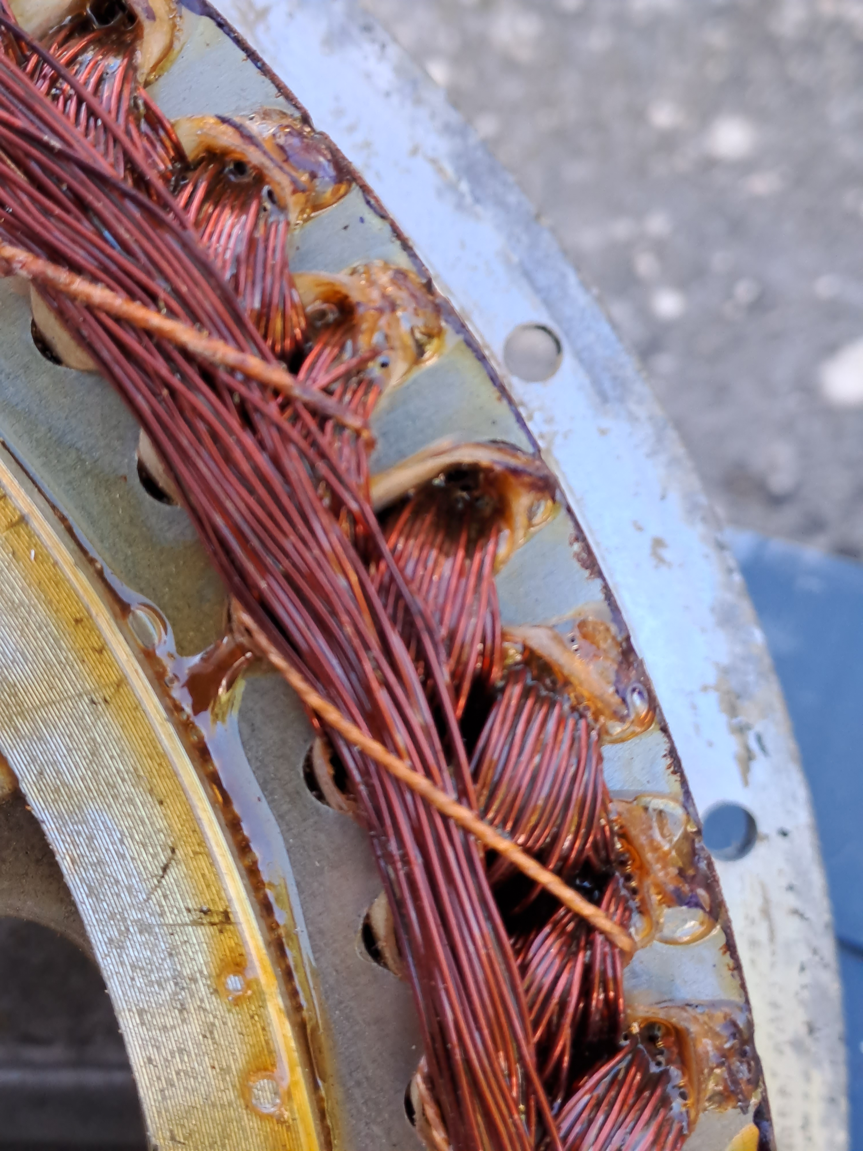 Die Wicklungen sehen noch gut aus. Die 14kWpeak und 7kW über einen sehr langen Zeitraum scheinen noch nicht das Limit zu sein