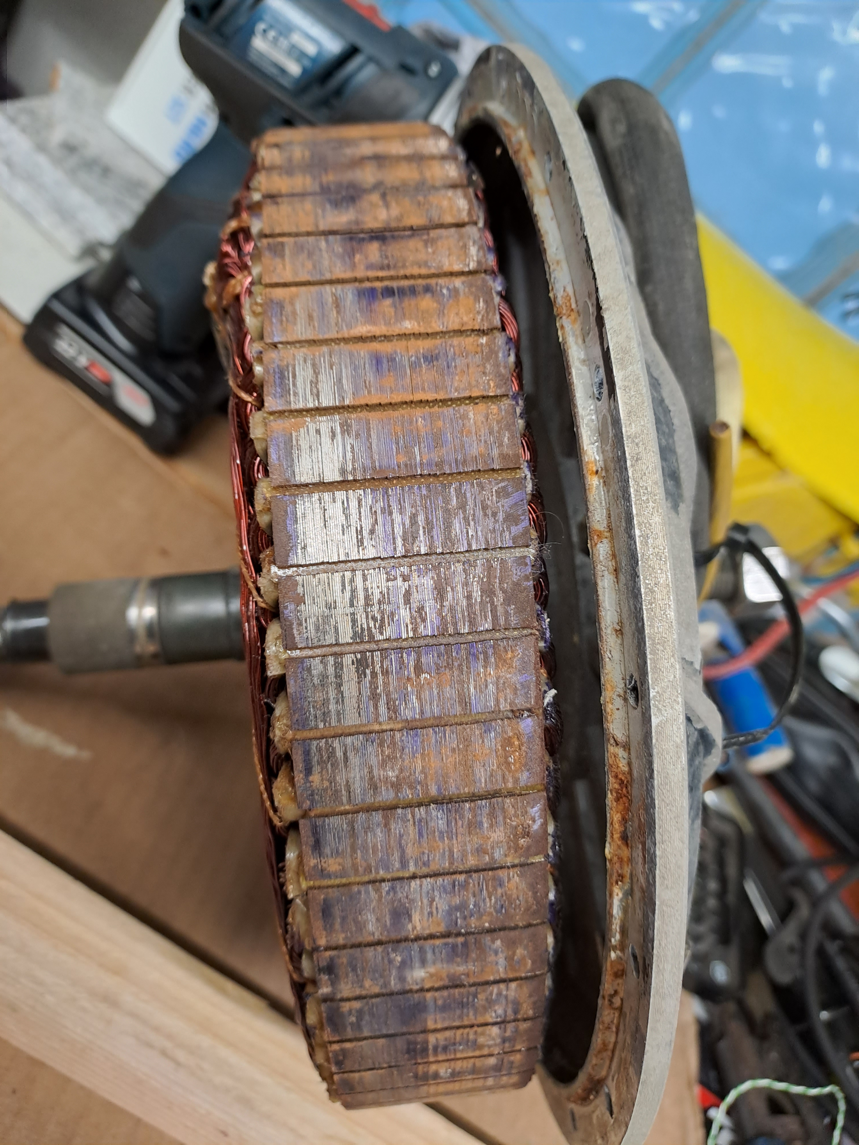 Der Stator war ab Werk lackiert und der Rost im Luftspalt hat die Farbe wohl abgeschliffen.