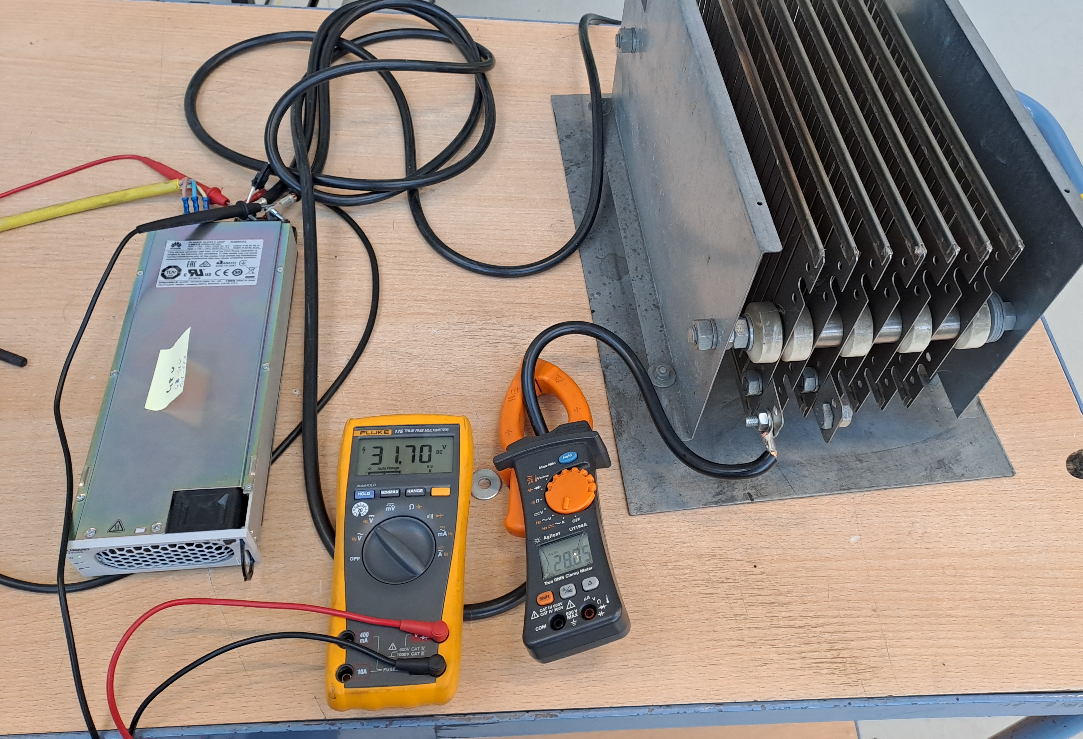 Mit der elektronischen Last kann man alle Betriebszustände schnell einstellen und testen. Die Widerstandsbank hat 1Ohm und kann gut 3kW vertragen