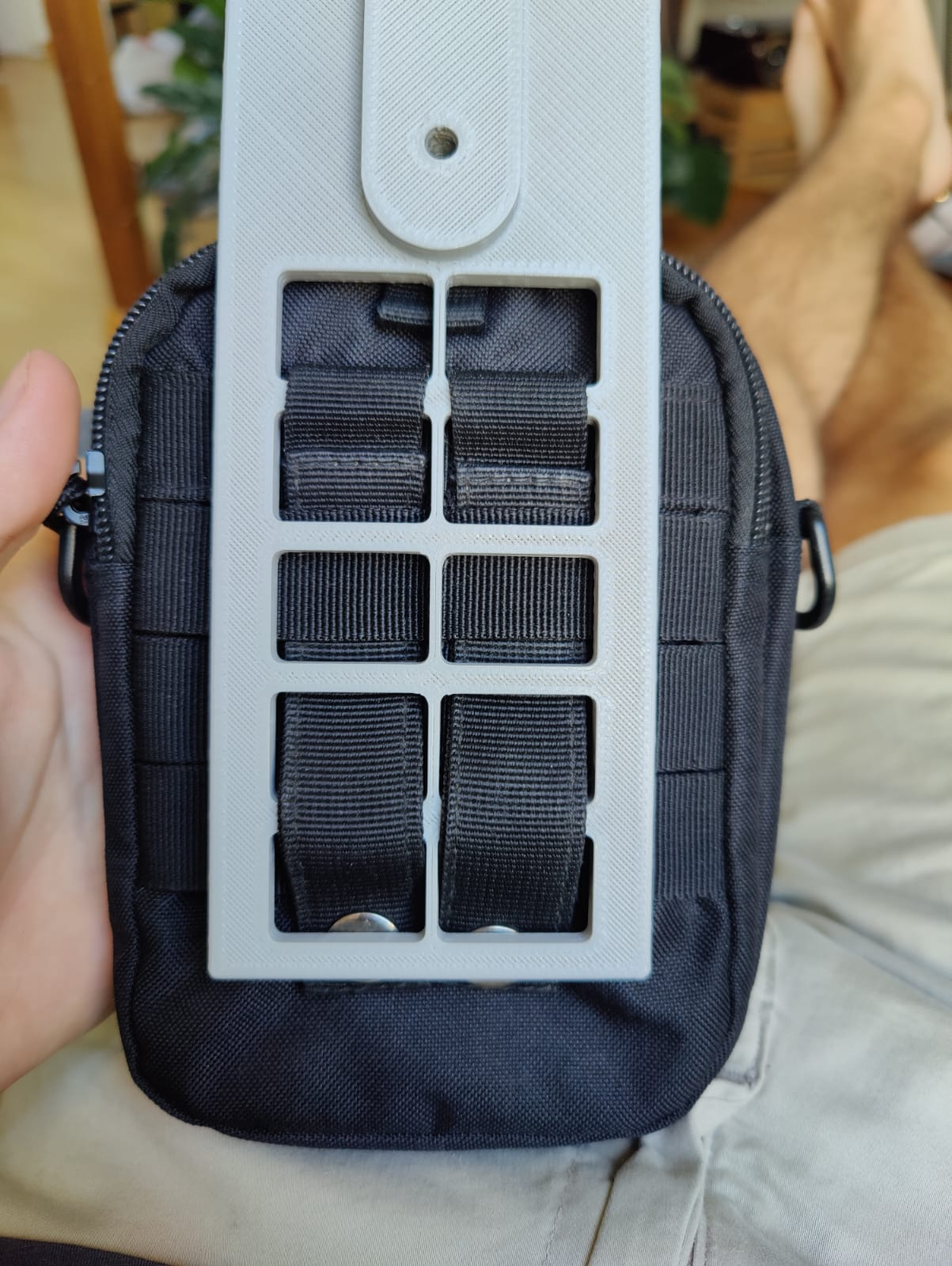 Die Idee war ein modulares System zu entwerfen, mit dem man relativ flexibel ist und herausgekommen ist ein Molle Panel, an dem ich Molle Pouches und Zubehör montieren kann. Da Molle-Systeme eben genau auf Modularität ausgelegt sind, hielt ich das für die beste Möglichkeit.