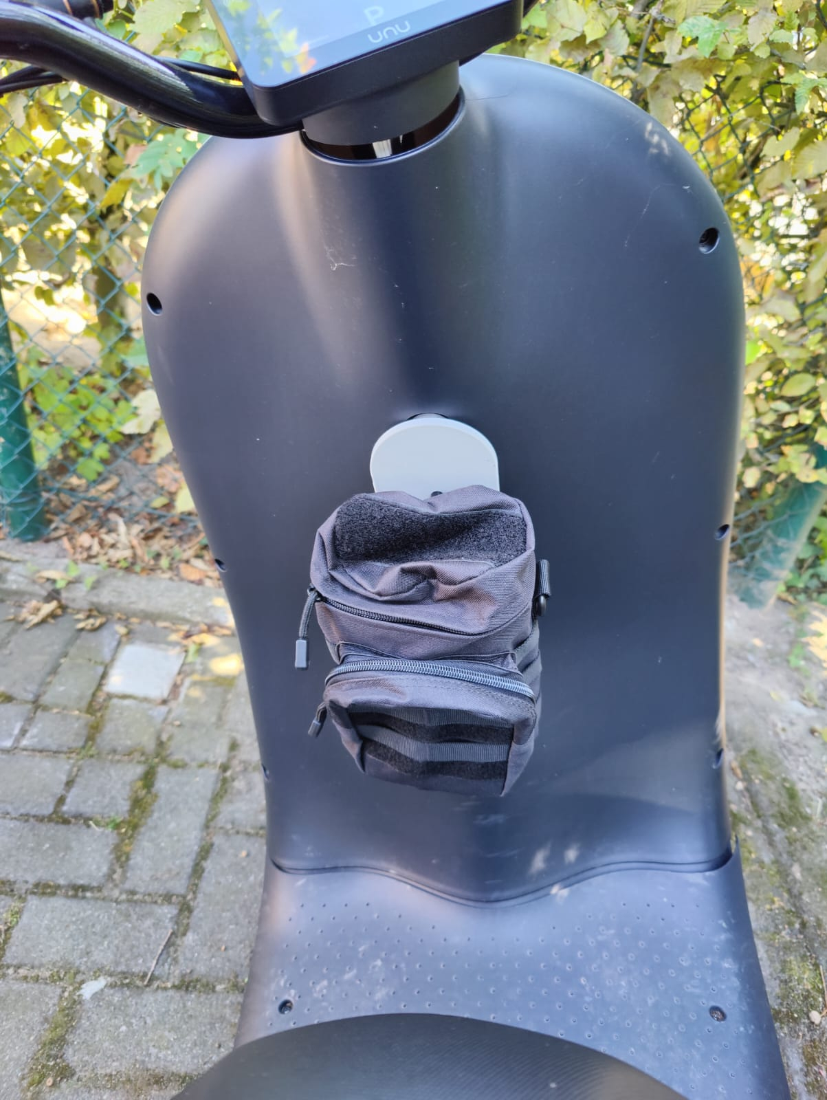 Ich habe ebenfalls überlegt eine "Tasche" an der Front mit anzubringen, allerdings dann gespannt von ganz links nach ganz rechts und dafür die Schrauben die der Roller bereits für die Verkleidung hat zu nutzen - Hast du da zufällig Erfahrungen?