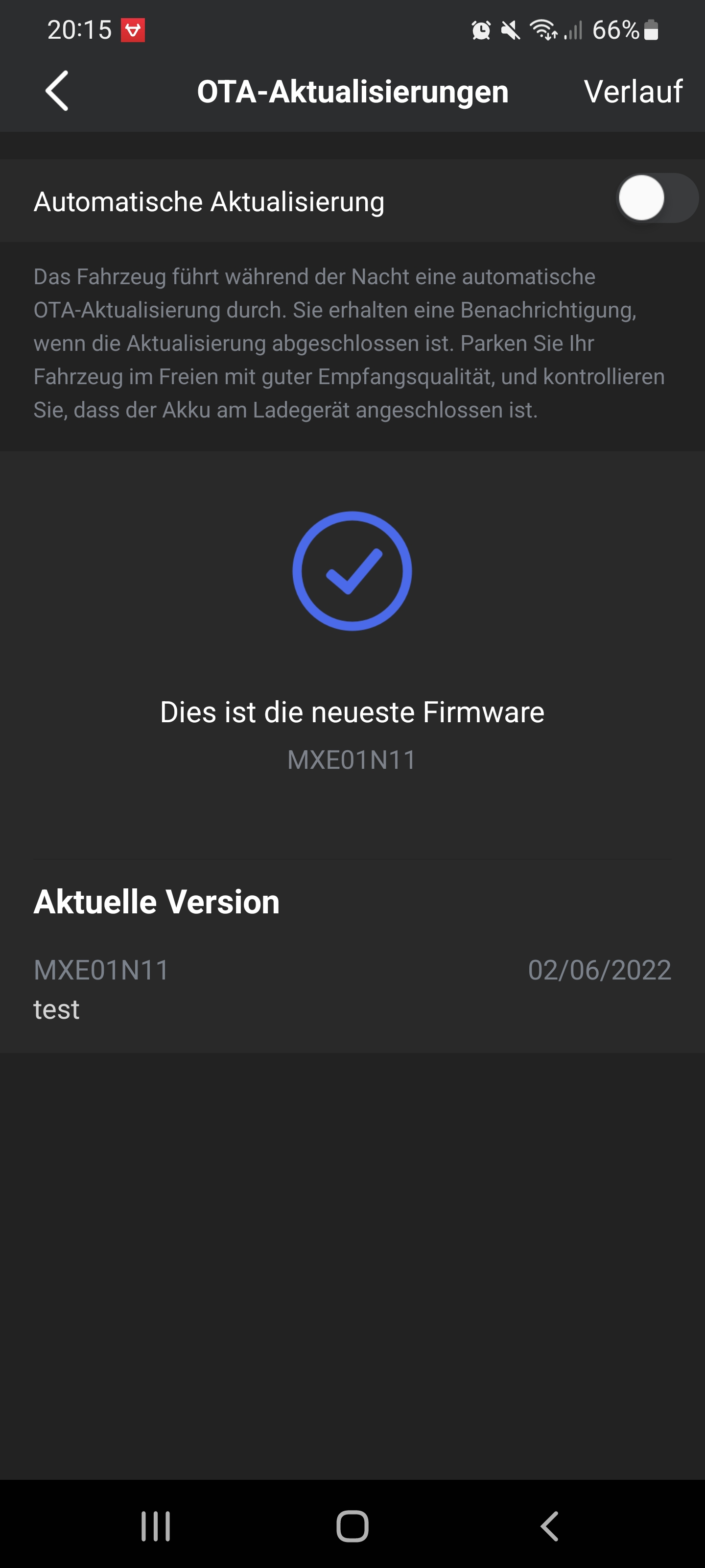 Fahrzeug ist offline .Kannst du mal schauen was in der App jetzt für eine Firmware angezeigt wird