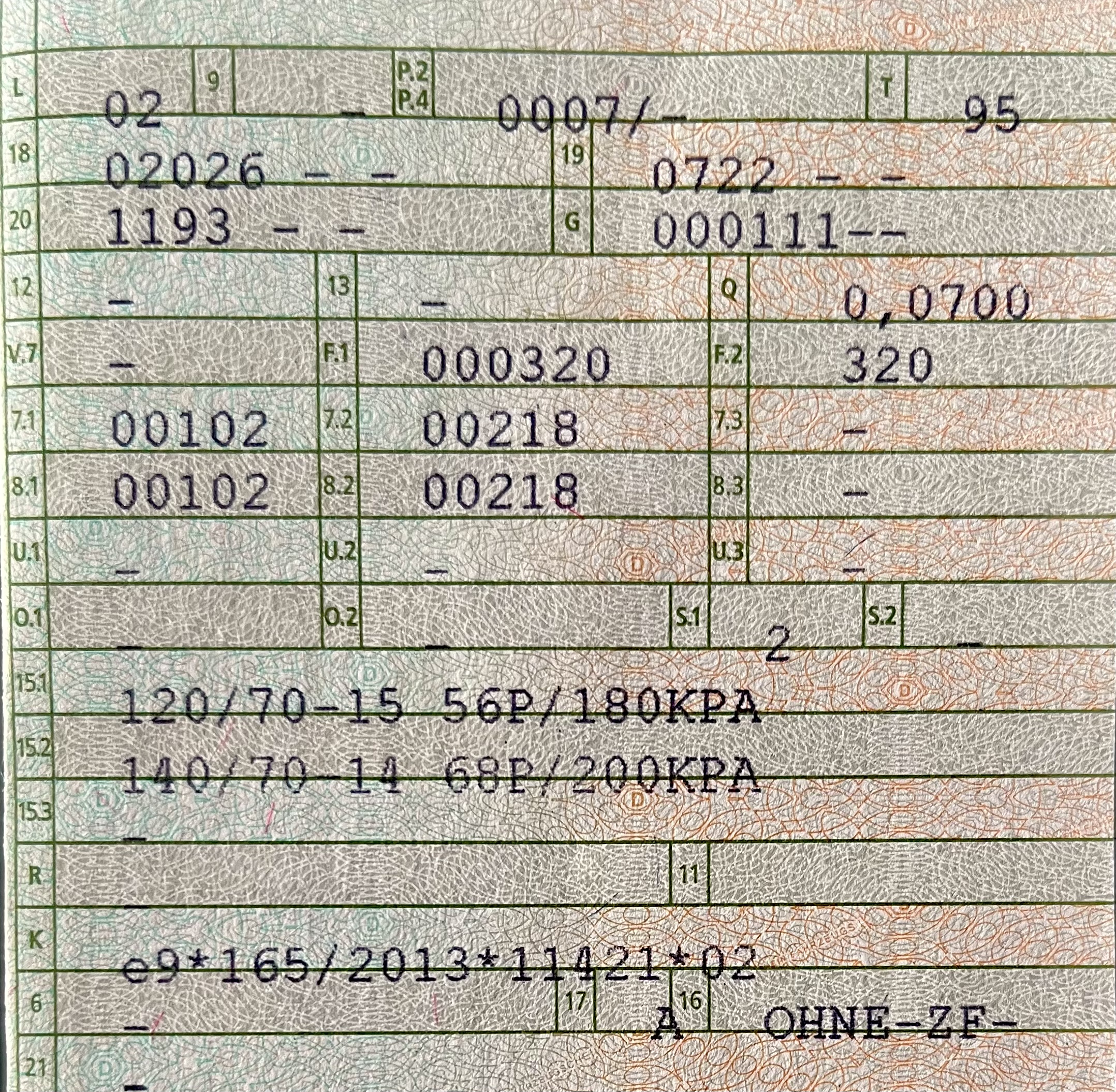 Da war wer auf der Zulassung wohl ganz schlau und hat sogar den Luftdruck eingetragen. Wenn der nicht stimmt dann gibt's Ärger