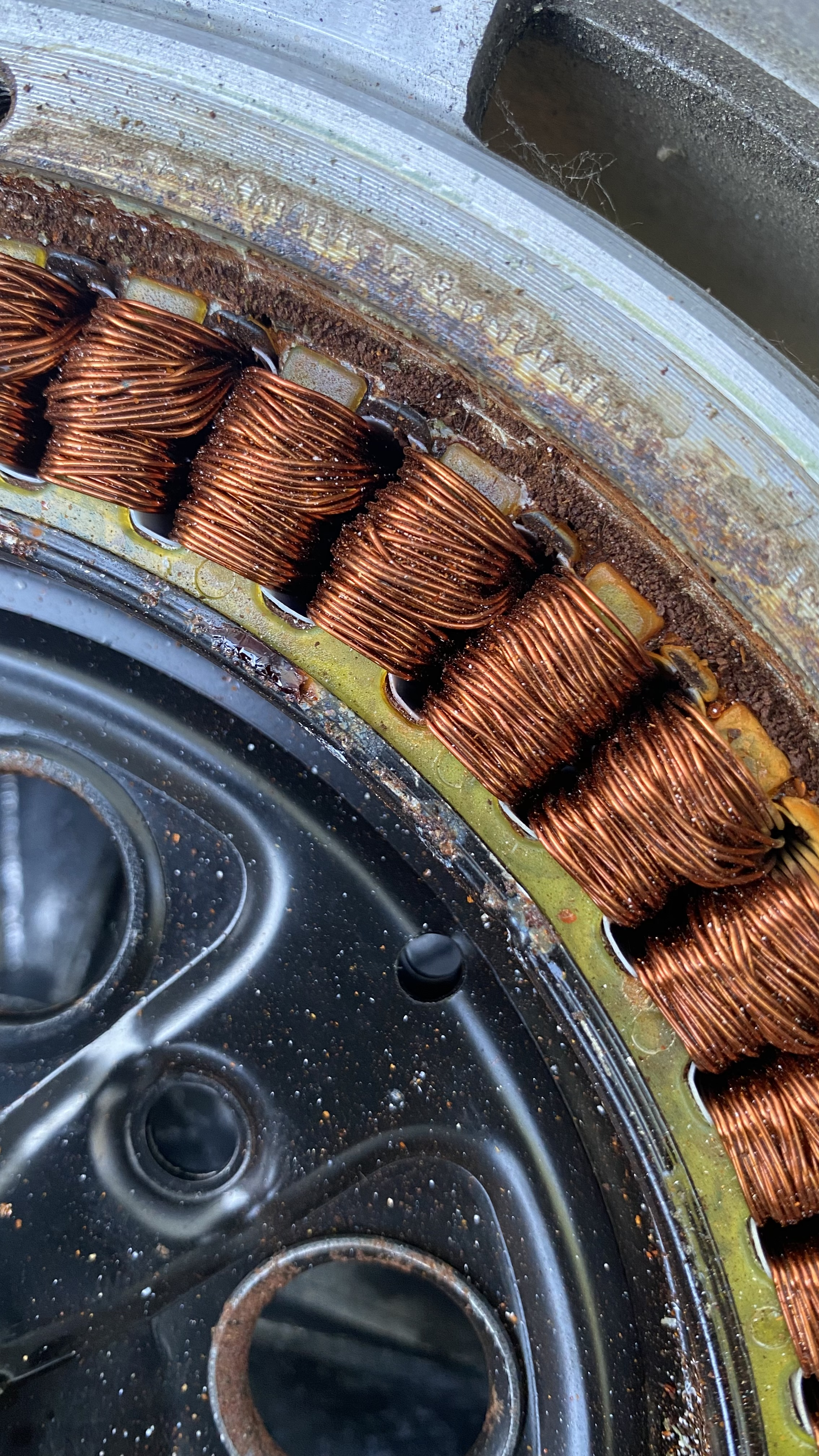 Puh, das sieht schlimm aus. Wenn man überhaupt den strator vom Rotor noch trennen kann, man könnte sowas versuchen aber selbst ich seh da schwarz.