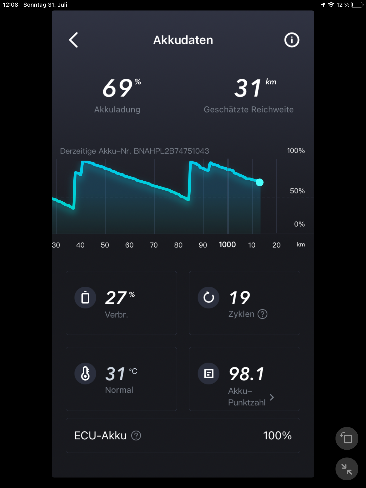 - 22.306km | NIU N Pro _______ | EZ 04/2019 | 1. Akku | 033 Zyklen I @ Bergziege (neues BMS nach 213 Zyklen)