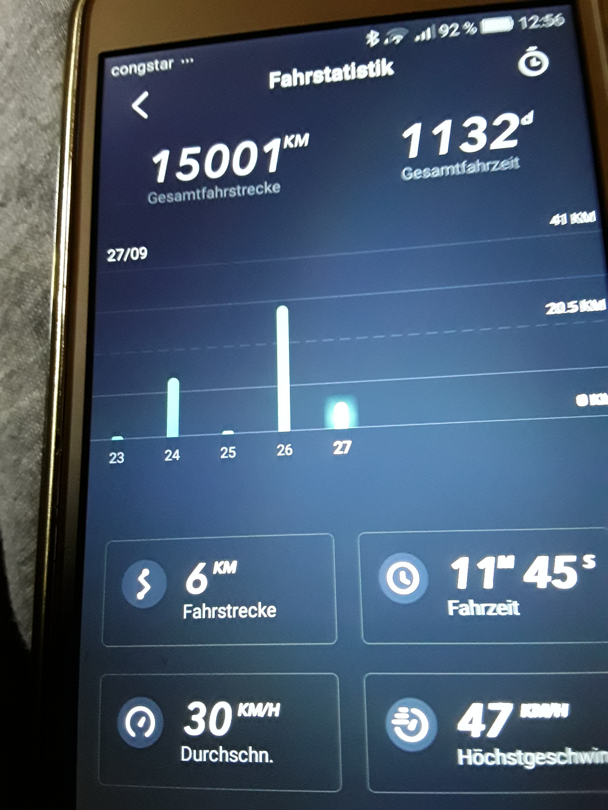 15.001 Kilometer und 164 Ladezyklen, und die App geht wieder, nach der war ich gestern in der Nähe von Bogota, wie erklär ich das meiner Frau ?