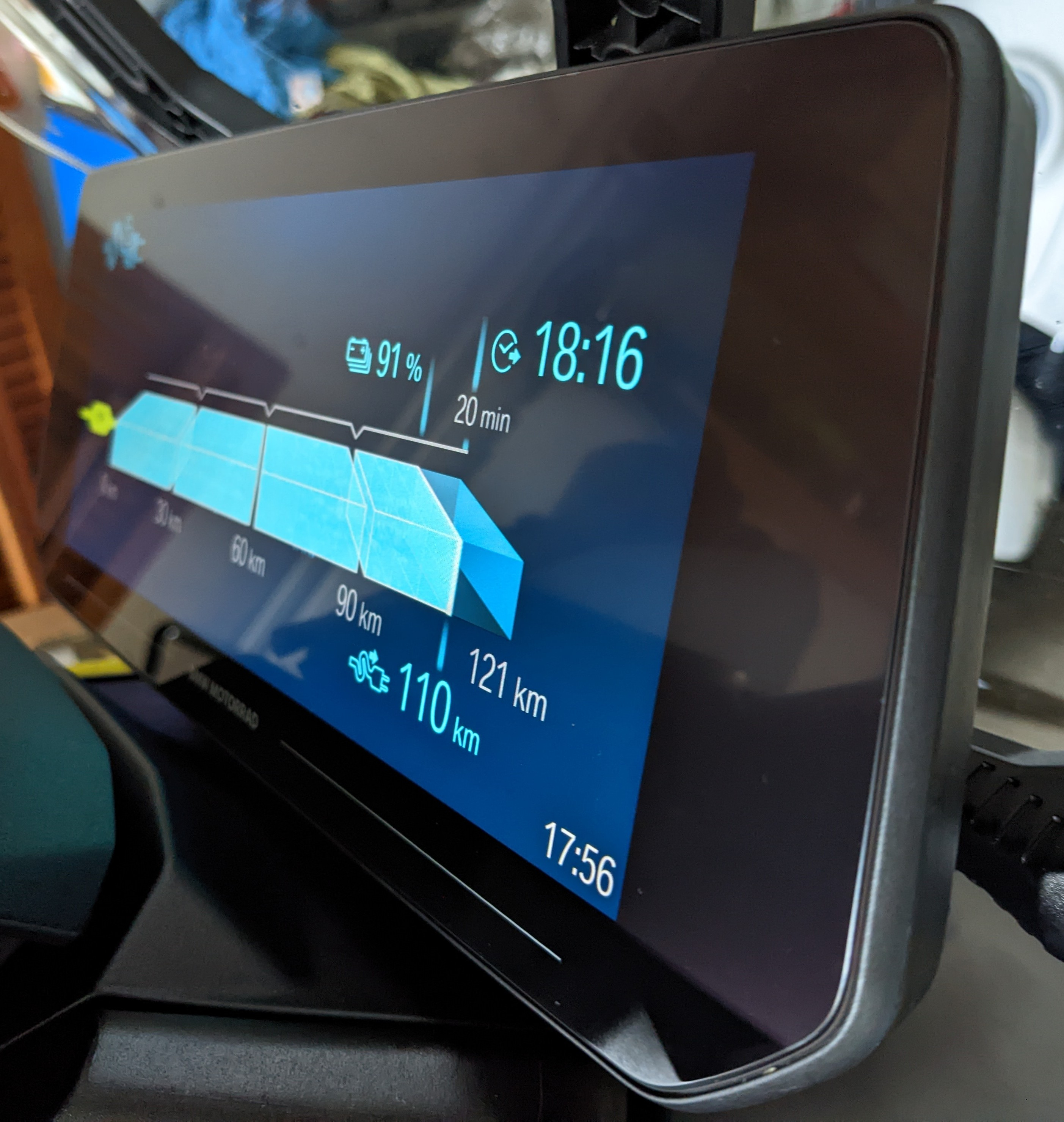 Update nächster Tag: heute Tour, der gelbe Balken ging während der ersten Kilometer bei ca 10°C langsam zurück. Es ist echt cool, welche Akku-Algorithmen BMW da implementiert hat.