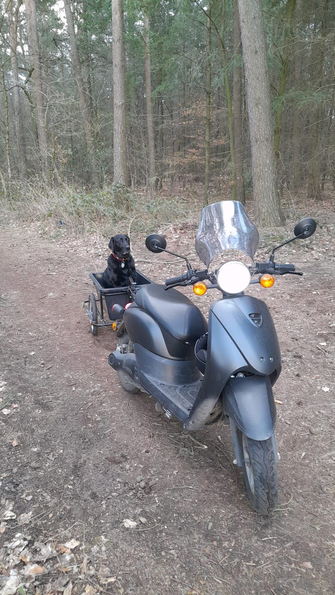 Angebaut habe ich einen Windschutz und eine AHK, wohl nicht ganz legal, ich fahre damit nur im Ort Altglas und Papier weg oder 400m zum Netto einkaufen, das Foto zeigt eine Ausnahme, sonst wird meine schwarze Prinzessin im E-Bike und Hundehänger mit Matratze kutschiert. :P