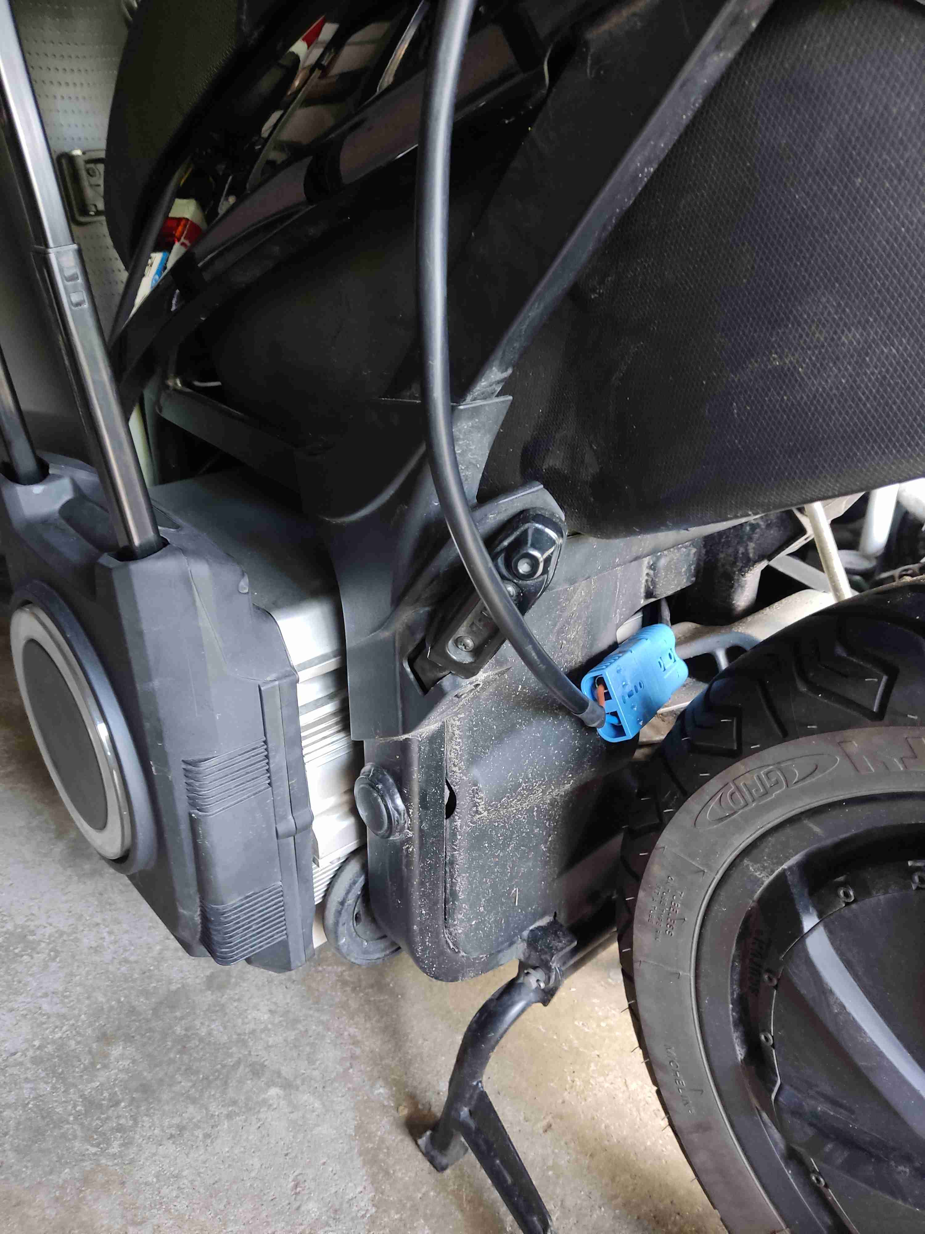 Der Lader kommt , wenn benötigt, ins Helmfach. Da mein Integralhelm eh nicht reinpasst. Normal lade ich mit zwei unter dem Akkukasten verbauten MeanWelll ELG240-42 mit mageren 500W.