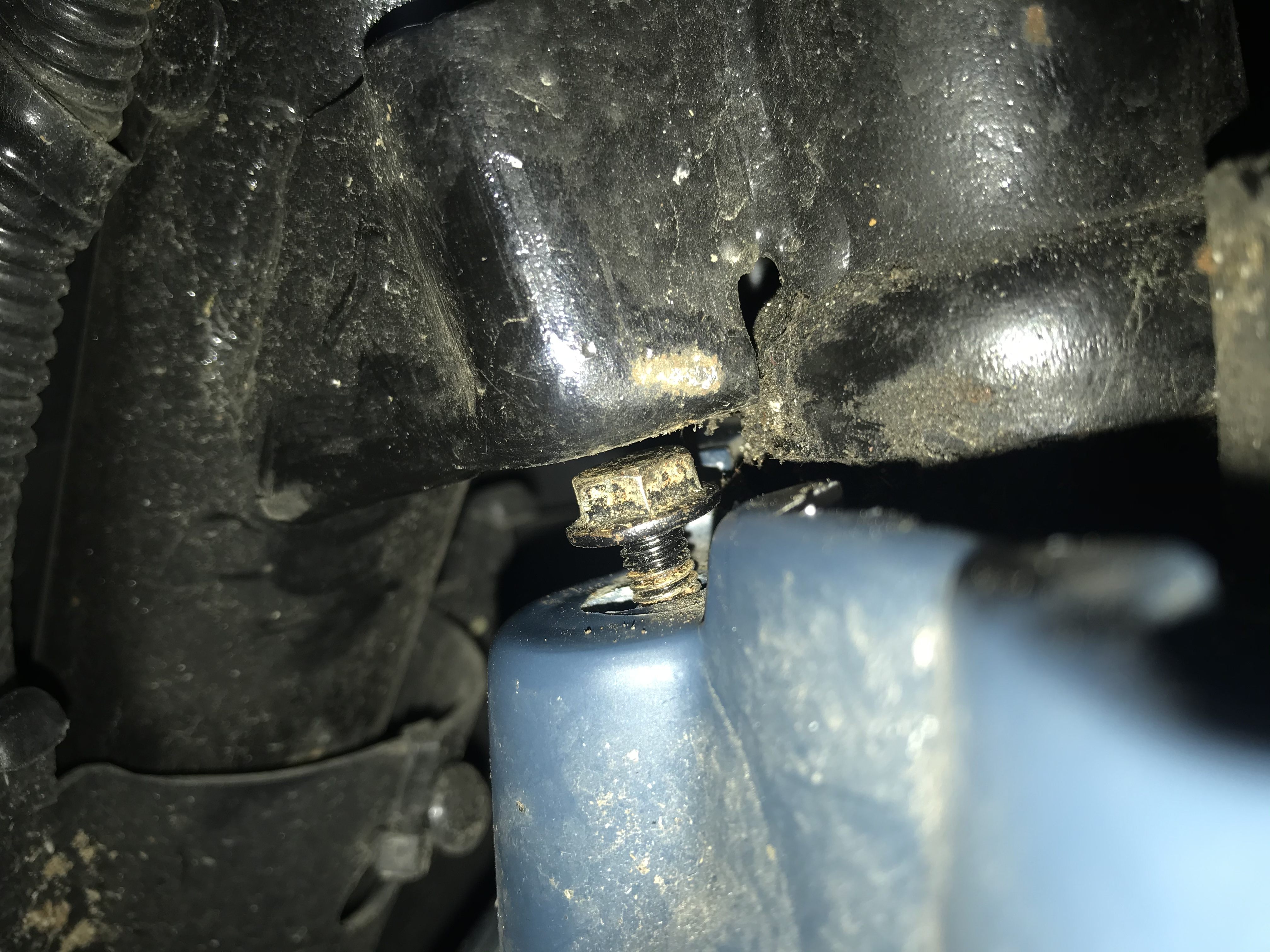 Wenn man die Innenverkleidung abschraubt und etwas nach hinten drückt, ist die Schraube mit einer Ratsche und mehreren zusammengesteckten Verlängerungen von oben zugänglich.