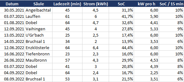 Ich hab mal die Ladevorgänge an Ladesäulen aufgeschrieben und bin einigermaßen überrascht: