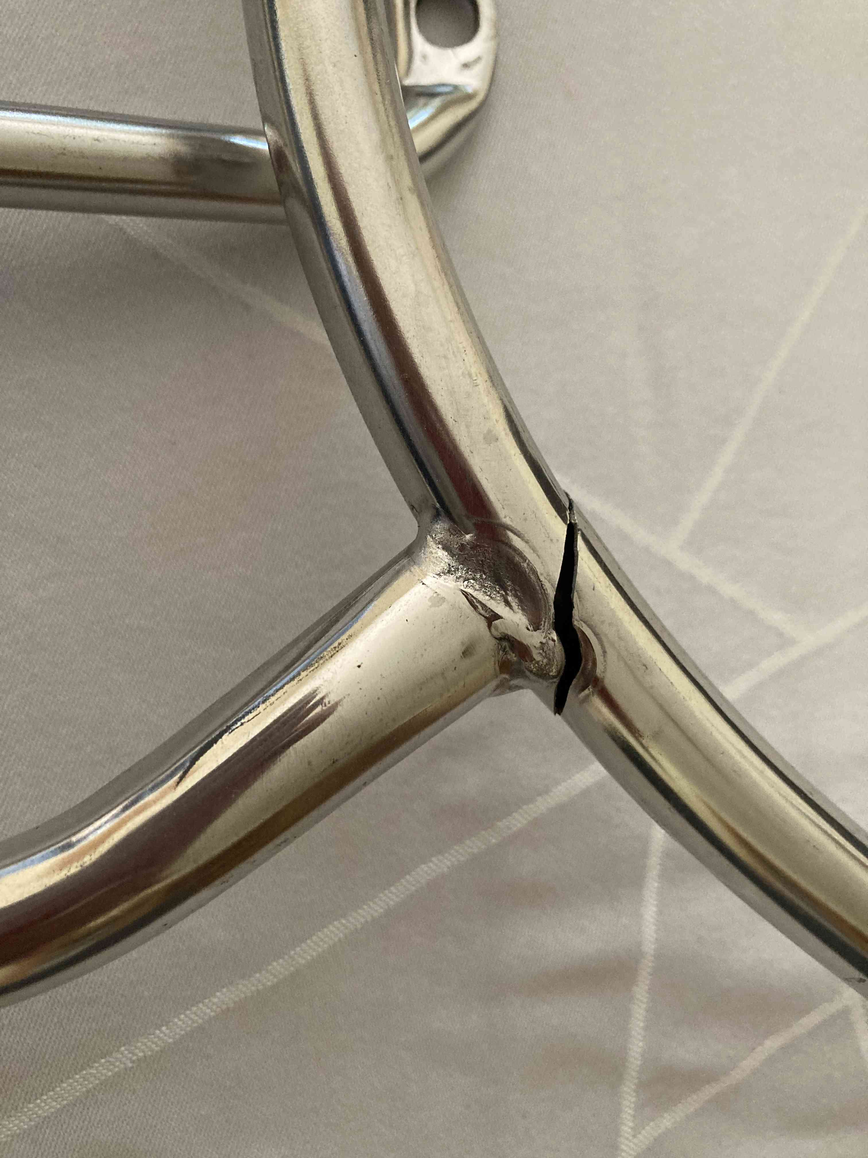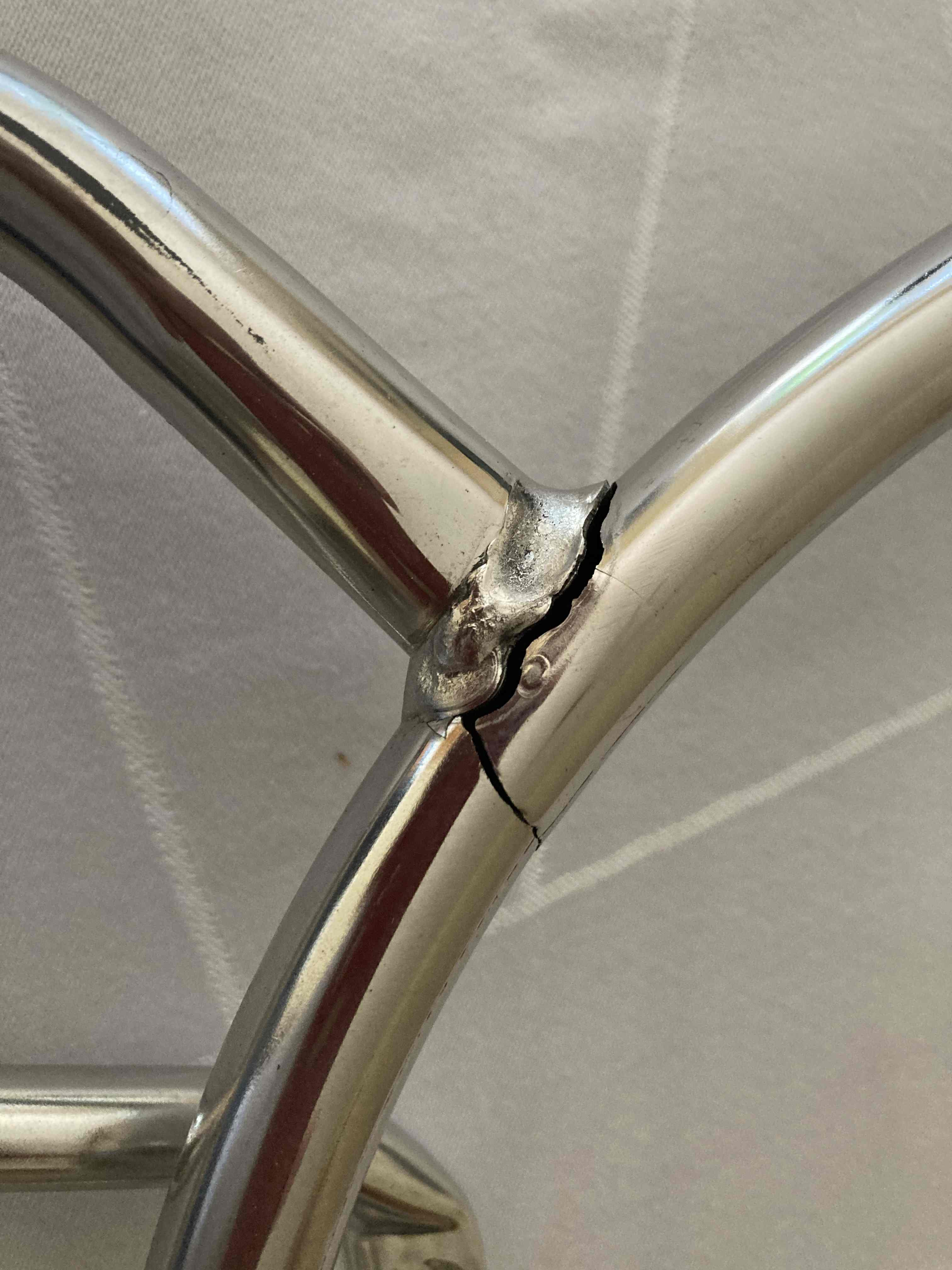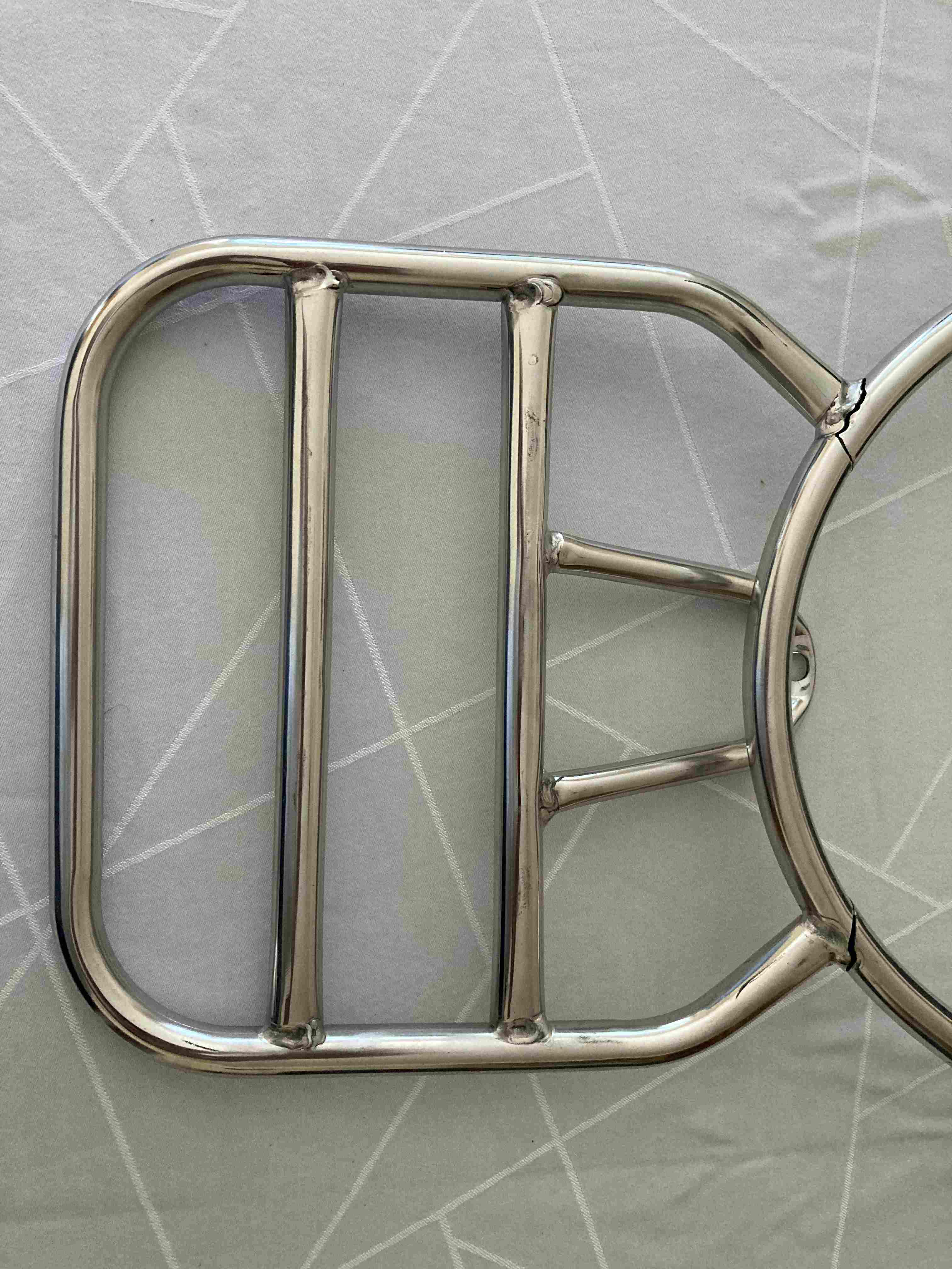 wenn ich mir die Bilder so ansehe könnte der Verdacht aufkommen das es sich die Risse direkt an einer der Einbrandkerbe bilden. Das ist eigentlich ein Fabrikationsfehler und die Schweissspannung zu hoch. Ich würde mich an der Stelle nicht auf Experimente einlassen und versuchen einen Stabilen zu kaufen, sondern Alternativ zum Metallbauer deines Vertrauens gehen und fragen ob er da was machen kann. Meiner Meinung nach könnte man die Stellen verstärken und anschliessend lackieren zum Schutz vor Korrosion.
