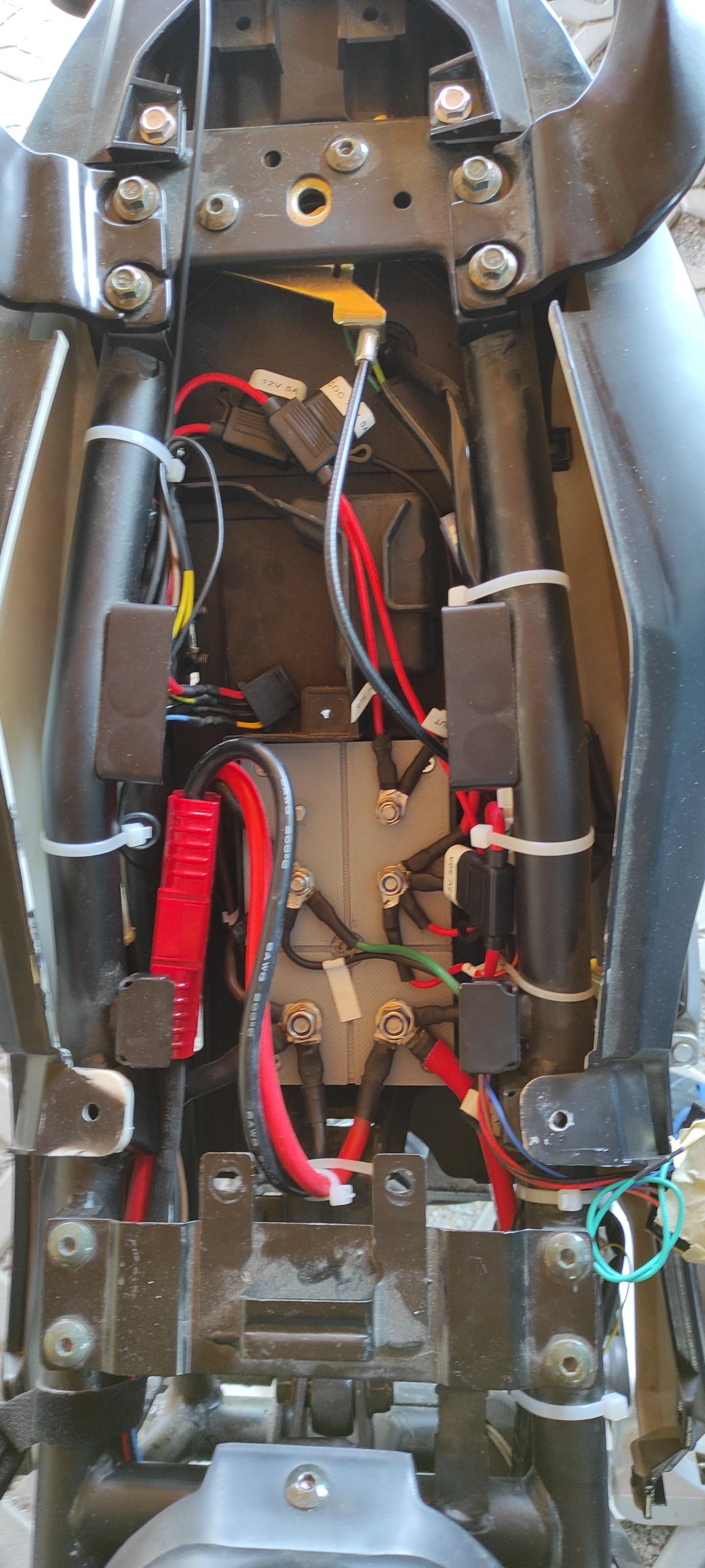 Hab den Anderson Stecker unter den Sitz verlegt als Not-Aus-Schalter und den Automaten Entsorgt. Im Akku sitzt vor dem BMS noch eine 150A ANL Sicherung fürs Gewissen. Vorher hat beim Kurzschlusstest aber das BMS reagiert und gekappt.
