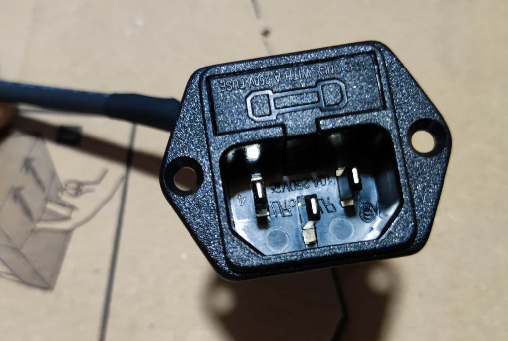 Ich kaufte die elektrische Ausrüstung bestehend aus einem C13-Stecker mit Sicherung und einem Kabel mit einem 3-poligen wasserdichten Stecker und einem 2-Meter-Kabel (20 cm reichen jedoch).