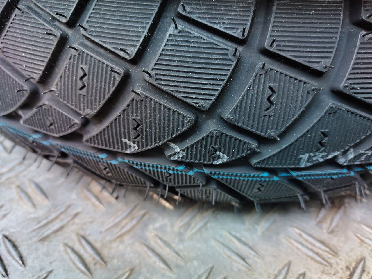 Die Reifen sind nach der DOT-Nummer Anfang 2. Quartal 2025 und haben auch noch kein Alpine-Symbol in die Form rein bekommen, das M+S ist noch drauf. Aber das Alpine-Symbol ist ja für uns nicht relevant.
