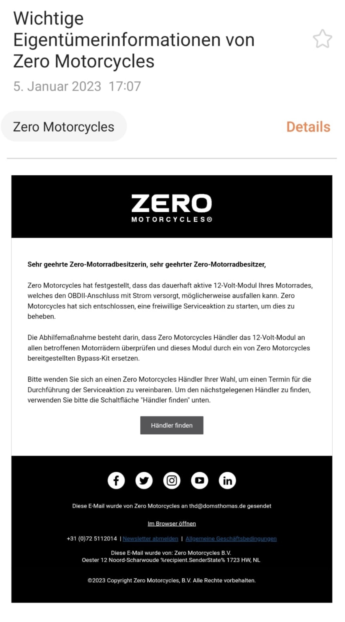 So, neues Jahr neues Glück ! (Frohes Neues, übrigens!)matflix hat geschrieben: Fr 14. Okt 2022, 18:57 Ich hab auf Nachfrage inzwischen schriftlich bestätigt bekommen, dass der OBD dauerversorgt wird und die Maßnahme dahingehend (zur Abstellung) ausgearbeitet werden soll.