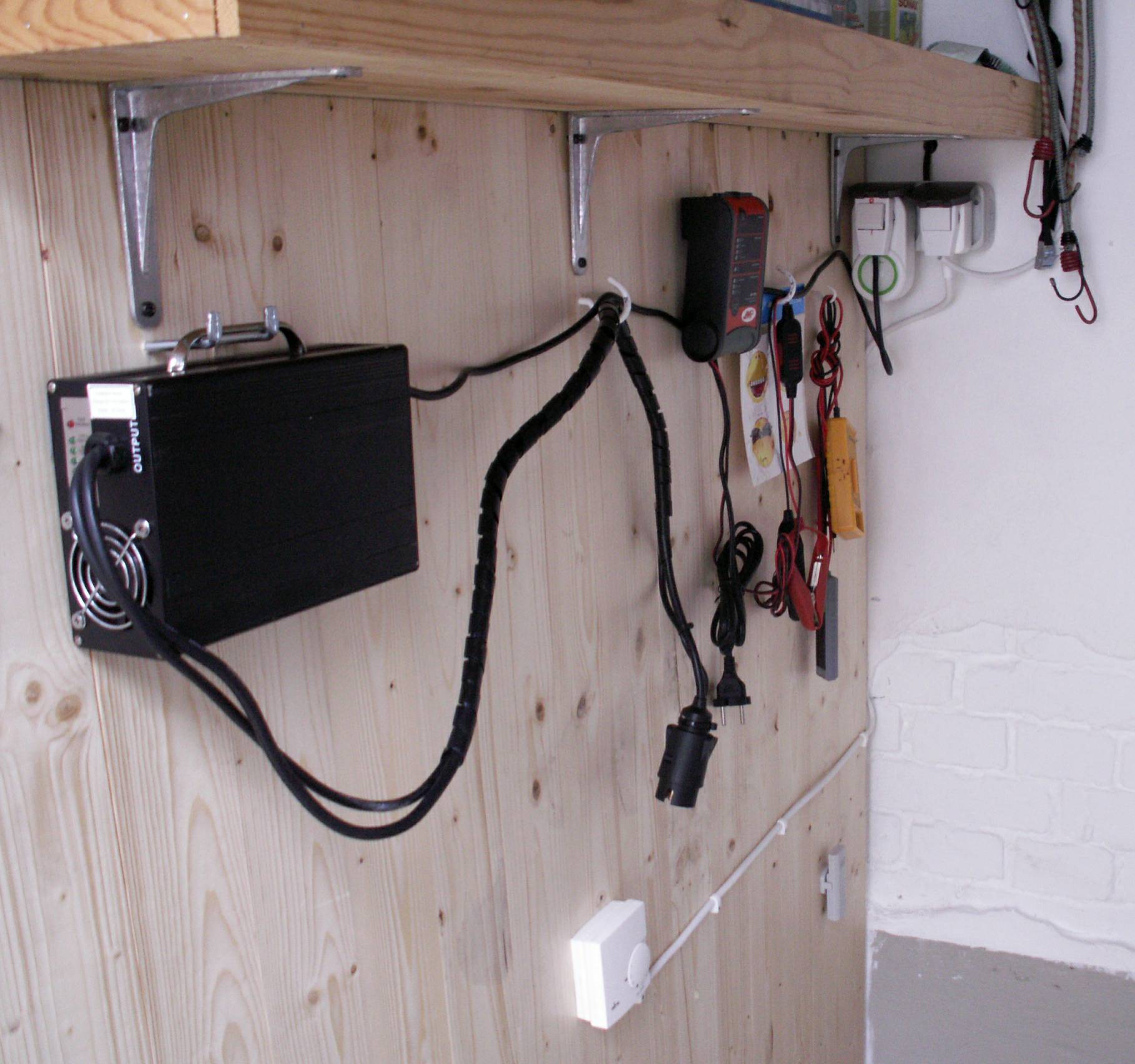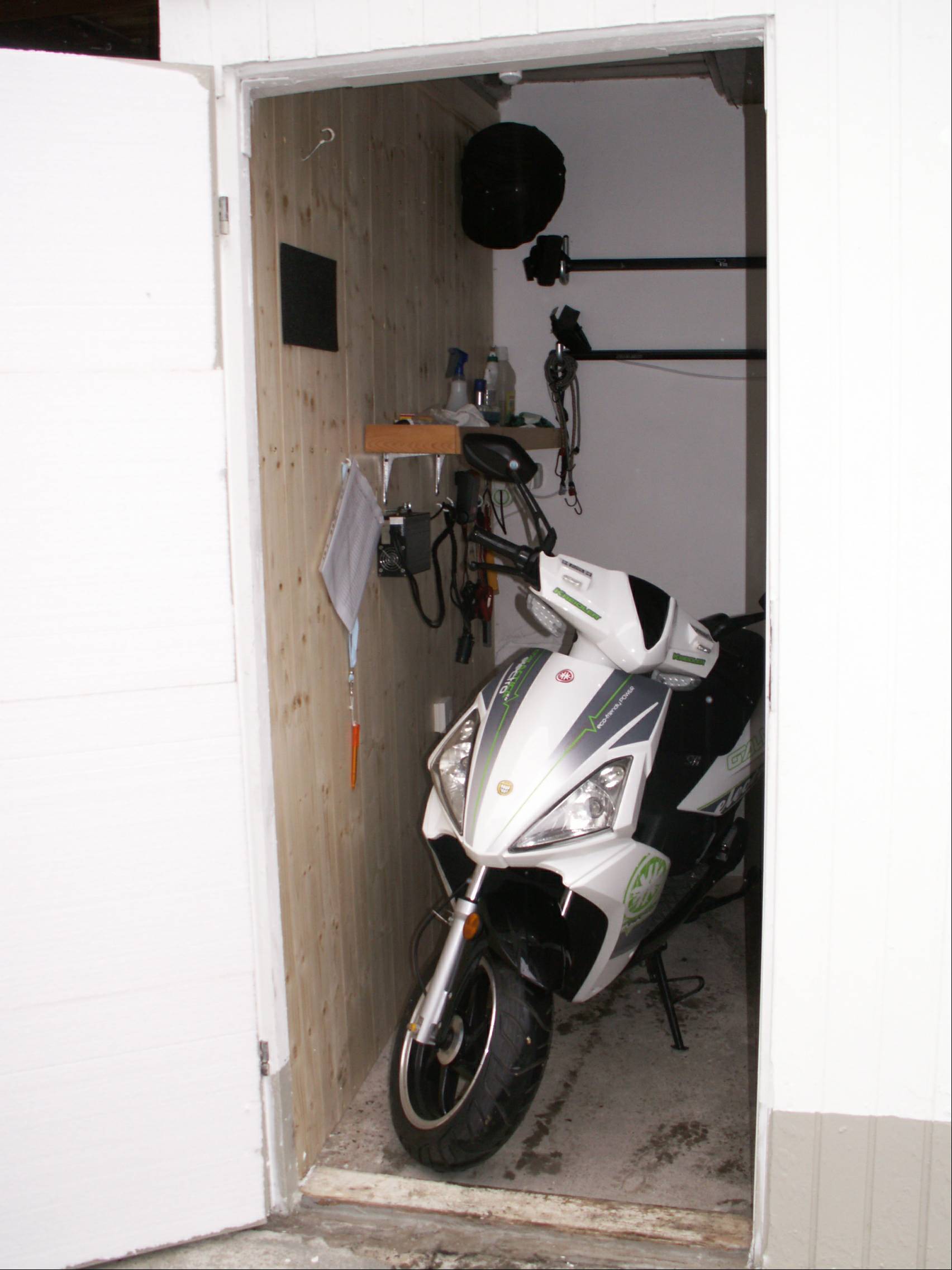 Erste und elementare Grundkenntnisse z. B. über Akkuvarianten (Blei/Ionen) und wie sie zu behandeln und zu pflegen sind. Das war deshalb entscheidend, weil ich sonst bereits den jetzigen Akkusatz (ca. 1.600 €) in Grund und Boden geritten hätte. Die nächsten Erfahrungen betraf die Lademethoden und ihre Intervalle, die Kälteempfindlichkeit von Lithium Ionen Akkus, der zu fahrende Luftdruck wegen des Rollwiderstandes etc. Nun habe ich eigens für den Roller unter dem Überbau meines ehemaligen Kleintierstall einen bestens isolierten abschließbaren Verschlag mit Stromversorgung und eigener Elektroheizung gebaut. Der Akkulader steckt hinter dem von "MEroller" unter Akku Technik beschriebenen Oregon-Energiemesser, die Elektroheizung hinter einer zweiten Oregon-Funksteckdose.