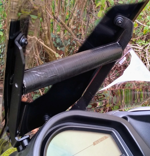 Sieht ja schon etwas wild aus. Ganz abgesehen von den Löchern in den tragenden Streben. Ich bin ganz zufrieden mit der SP Connect Universal-Halterung. Trägt kaum auf, hält bombenfest und wackelt nicht.