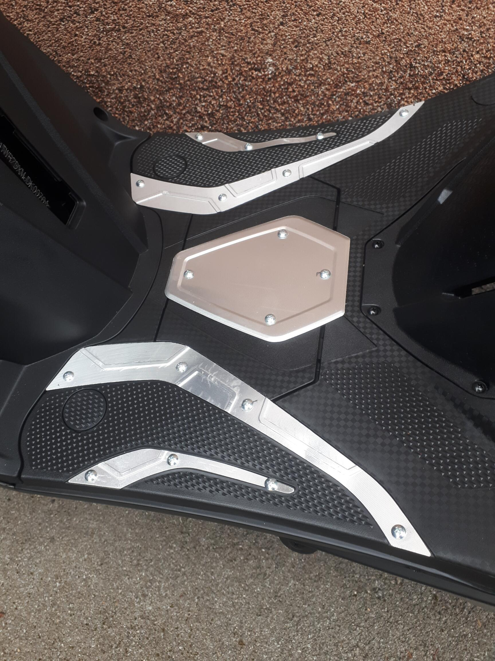 - Die Dekoelemente im Trittbereich sind aus billigstem Dünnblech - mein Motorradstiefel hat sich an einem Verfangen und verbogen. Werde ich einfach abschrauben. Vielleicht montiere ich etwas besseres dran, dauert aber noch.