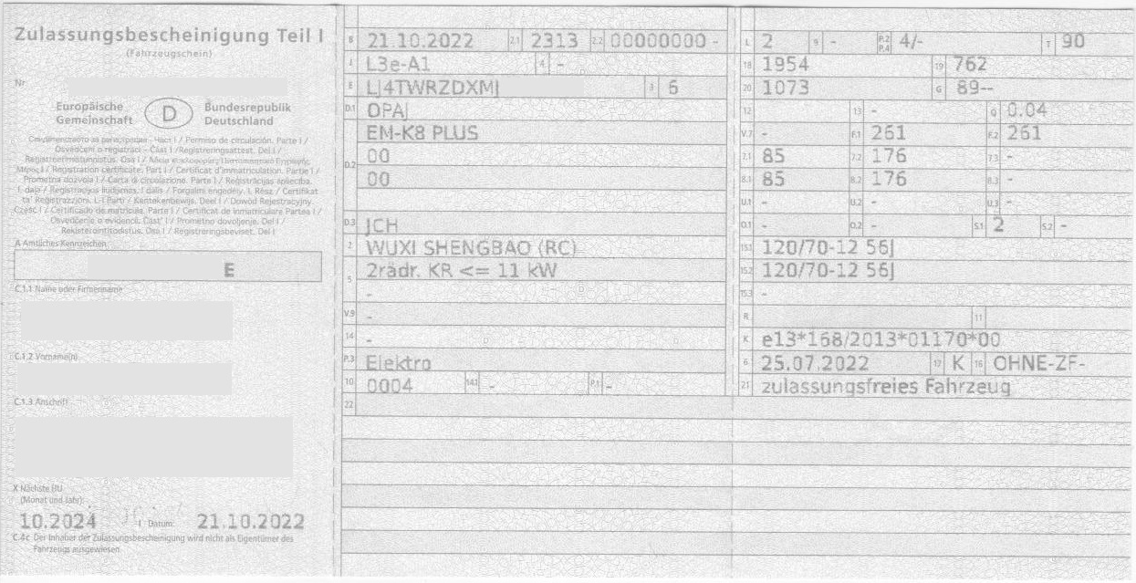 Es gibt aber nur ein Datum des Dokuments. Zu meinem großen Glück hat bereits jemand anderes den Roller irgendwo zugelassen, im Gescannten CoC von der anderen Anmeldung wurde das Dokumentendatum akzeptiert - es war ne Woche älter als meins.