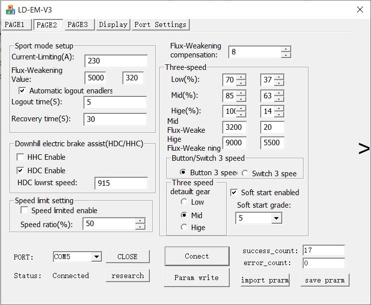 Leider finde ich viele Informationen für den SEVCON, aber nicht für die Votol MCU, und ich kann nicht einmal alle Einstellungen aus dem Handbuch verstehen. Ich möchte nur etwas mehr Regeneration in "City" haben und kann nicht finden, wo diese Einstellung ist - im "Switch 3 Speed" -Modus passt man es in den Porteinstellungen an, aber für "Button 3 Speeds", das verwendet wird, kann ich keine Informationen finden ...